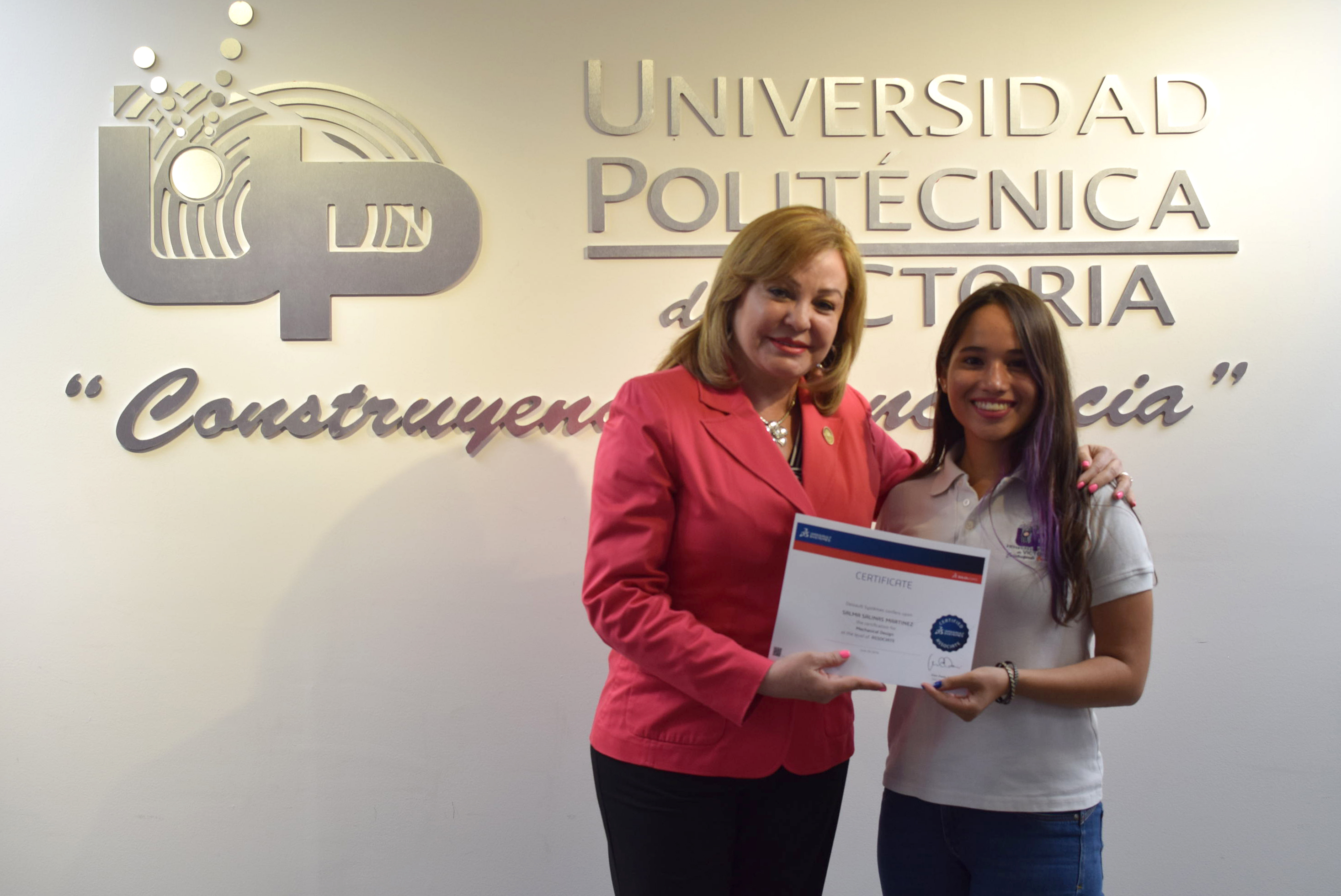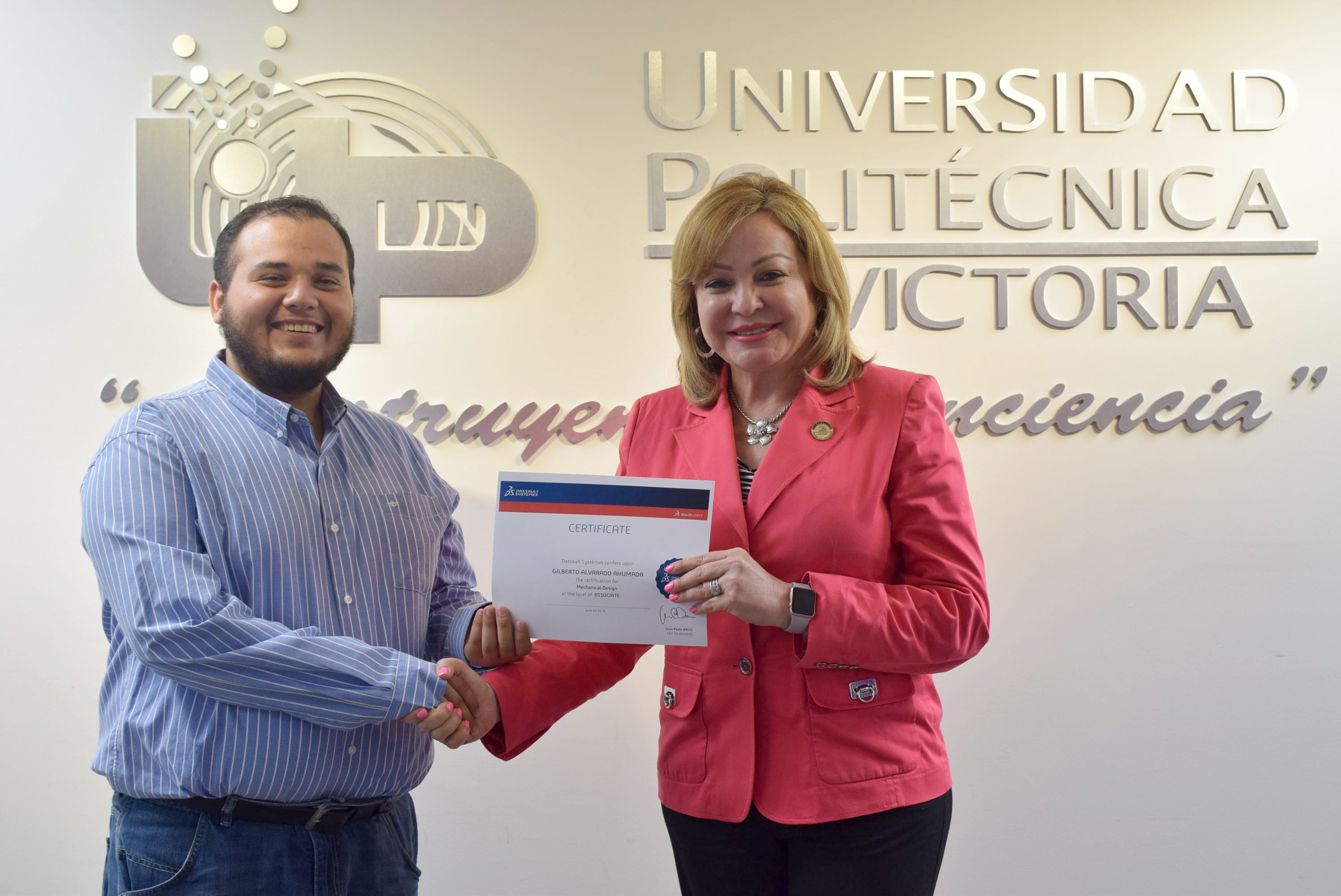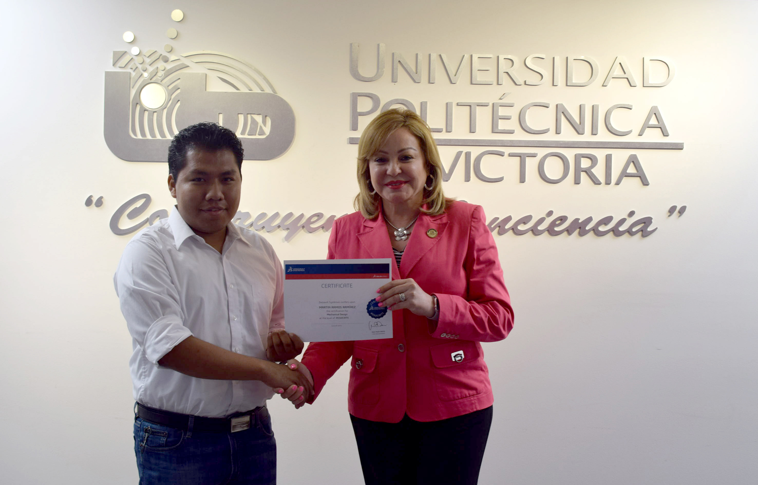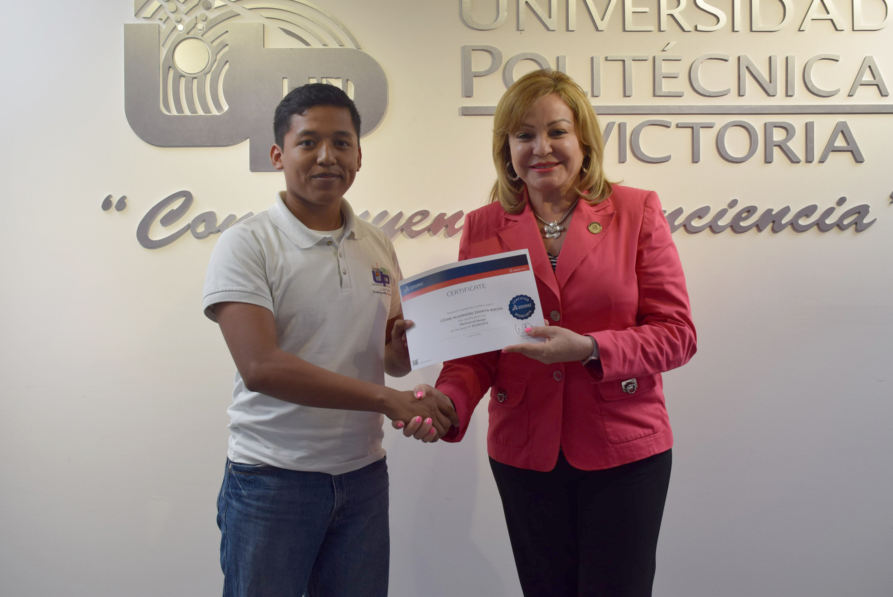 La Rectora de la Universidad Politécnica de Victoria (UPV) hizo entrega de 20 Certificados a igual número de destacados alumnos de los programas académicos de las Ingenierías Mecatrónica y Tecnologías de Manufactura, que presentaron y aprobaron la Certificación CSWA SolidWorks, que se suman a los 12 que obtuvieron dicha acreditación en diciembre de 2015.
