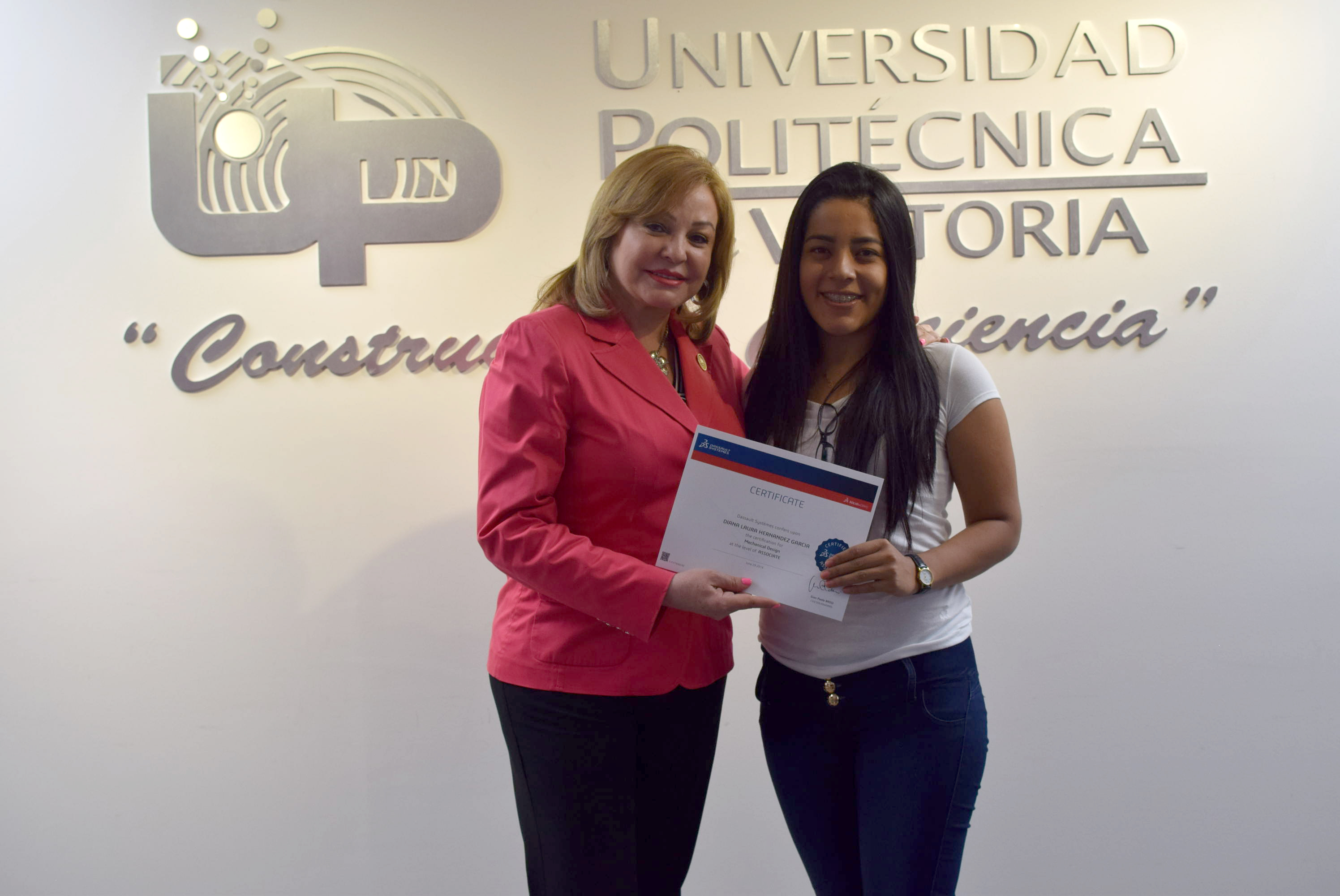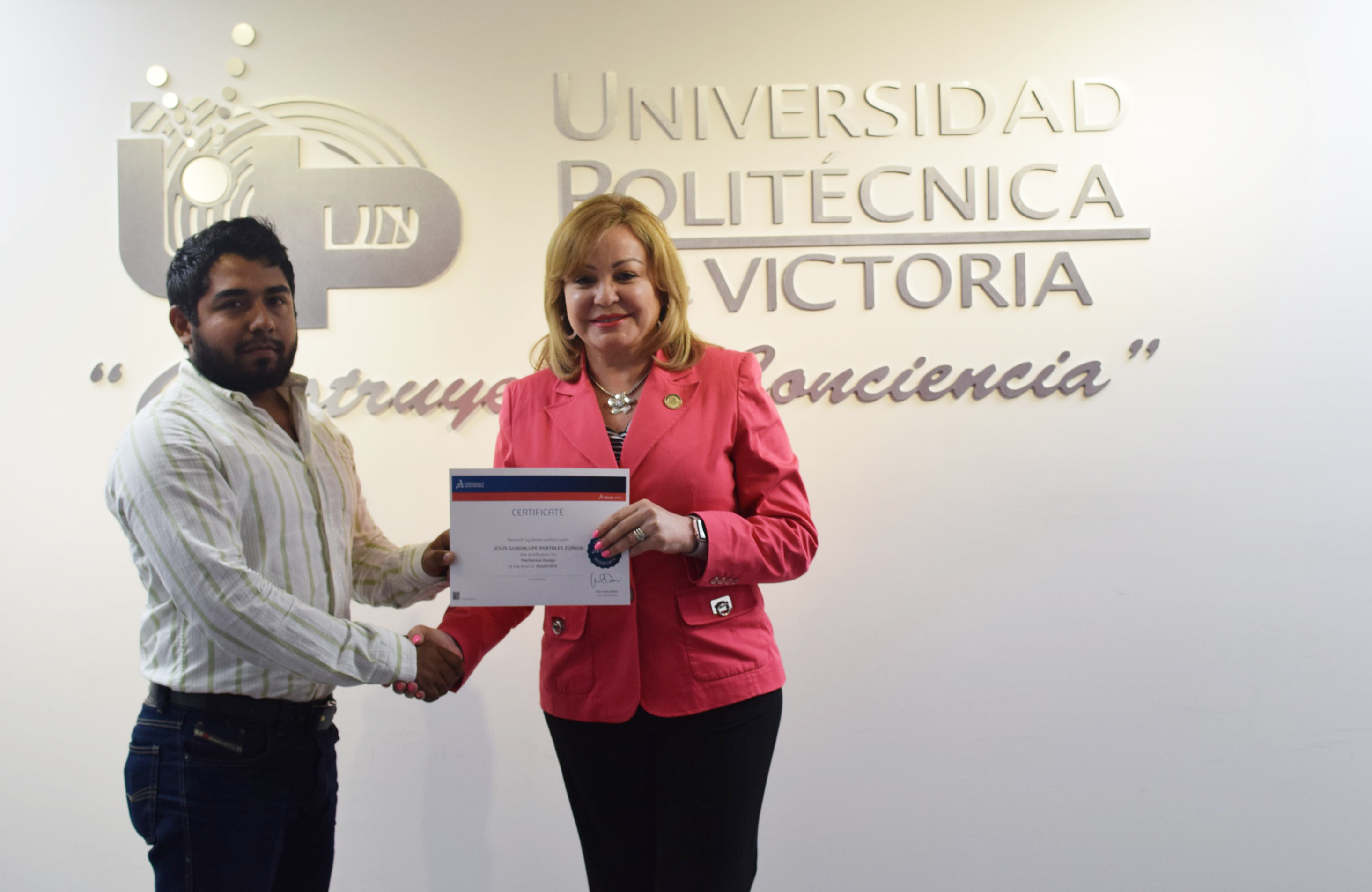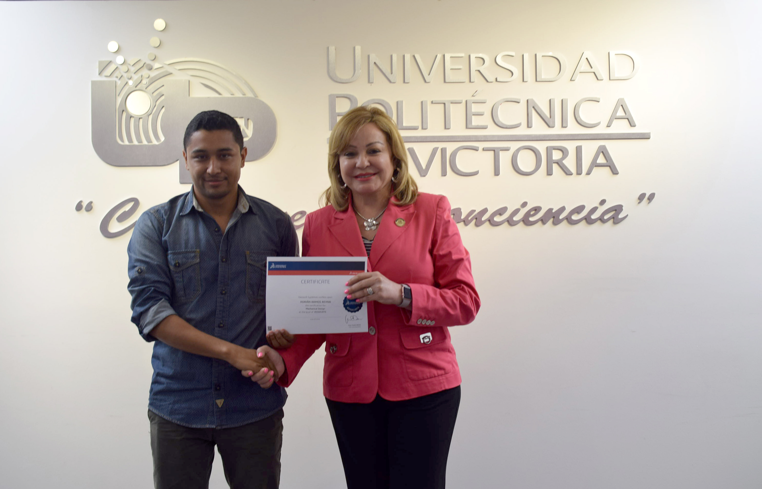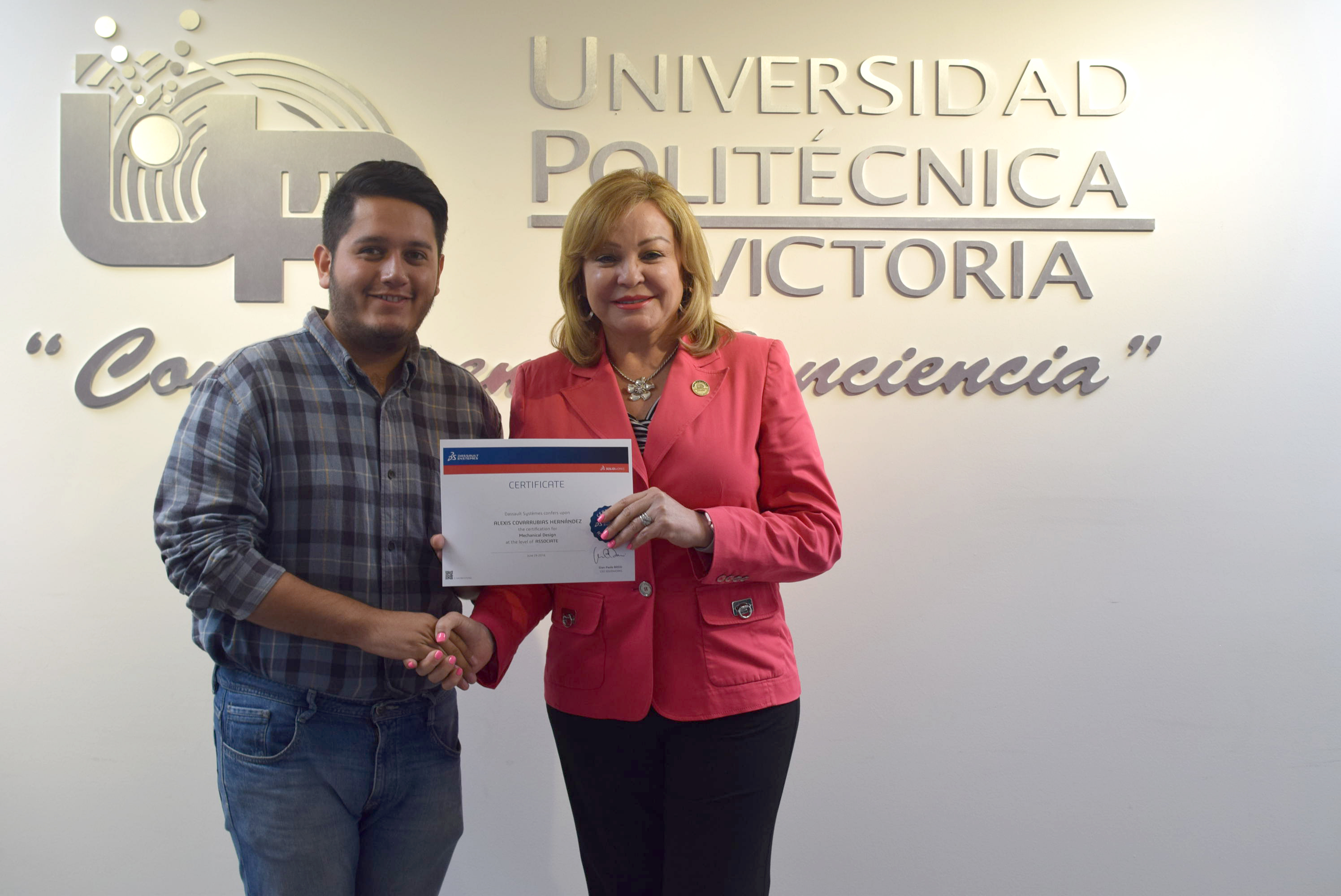 La Rectora de la Universidad Politécnica de Victoria (UPV) hizo entrega de 20 Certificados a igual número de destacados alumnos de los programas académicos de las Ingenierías Mecatrónica y Tecnologías de Manufactura, que presentaron y aprobaron la Certificación CSWA SolidWorks, que se suman a los 12 que obtuvieron dicha acreditación en diciembre de 2015.