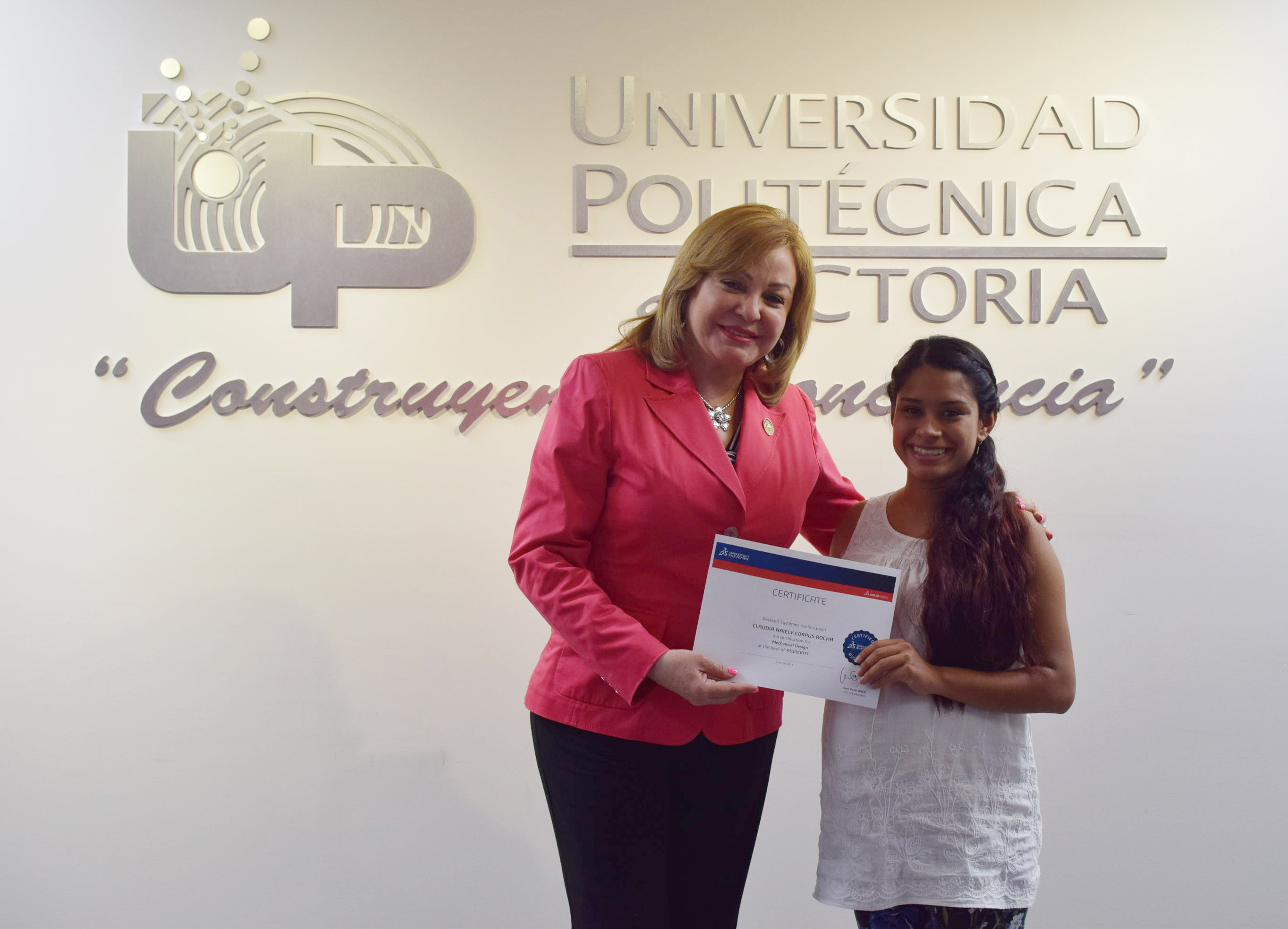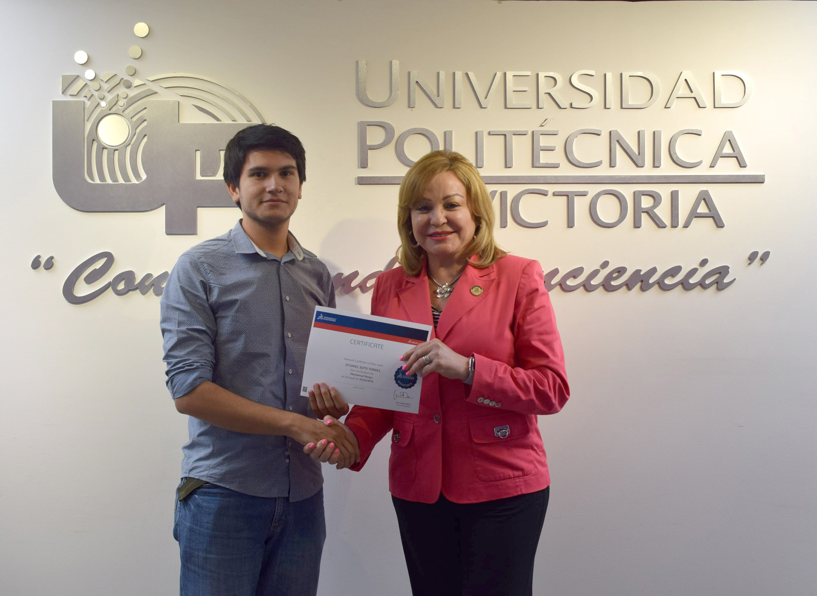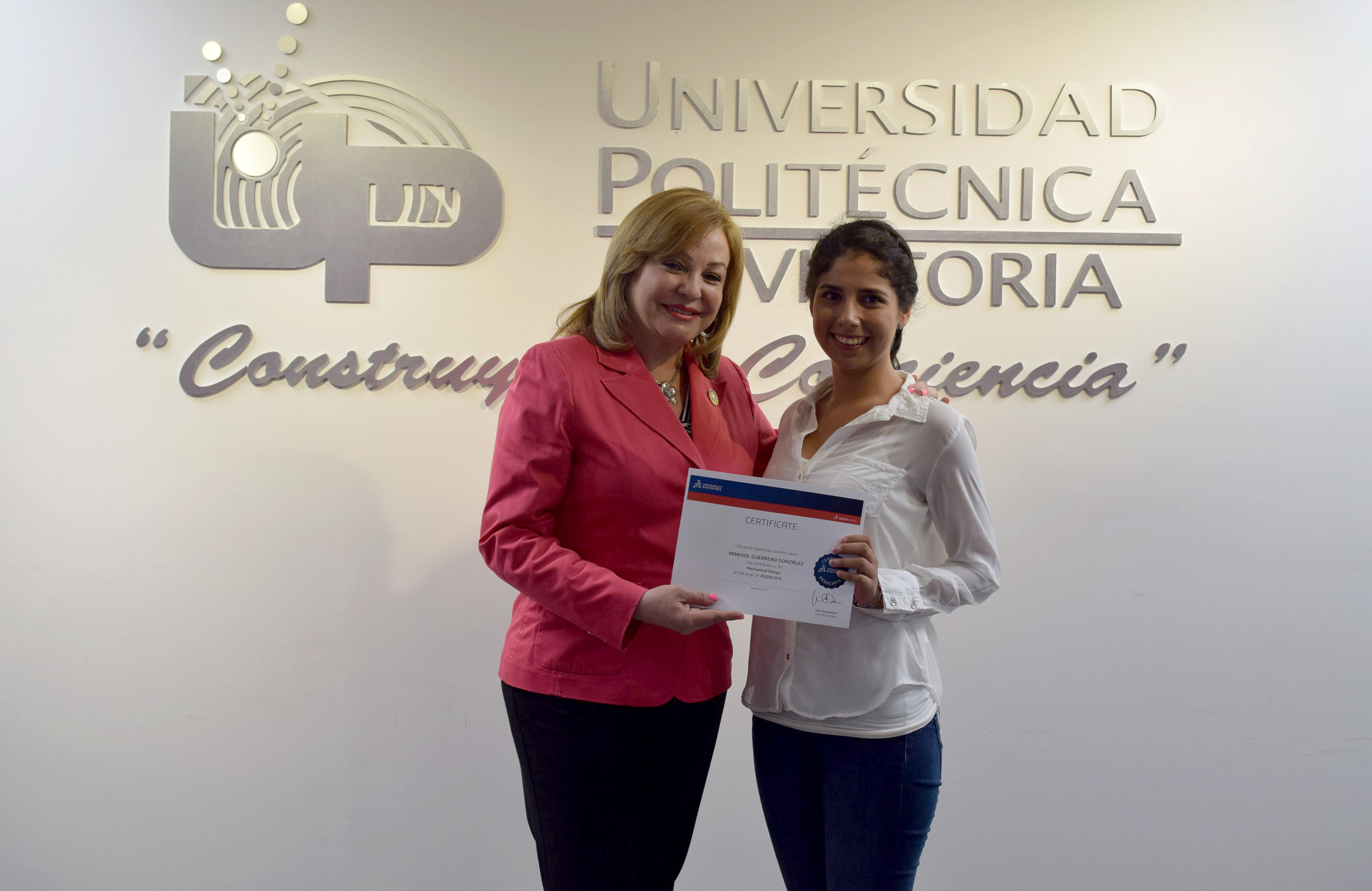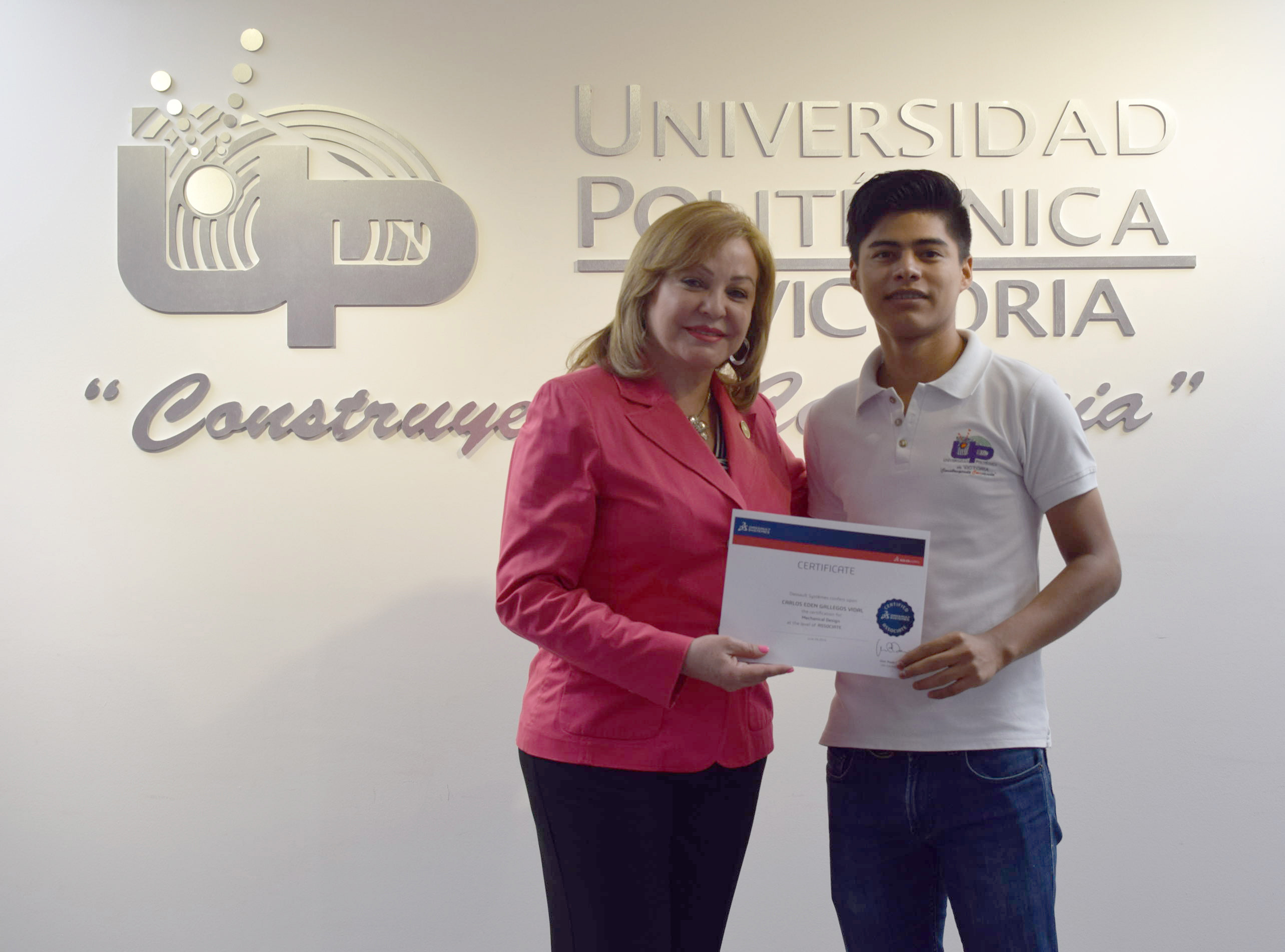 La Rectora de la Universidad Politécnica de Victoria (UPV) hizo entrega de 20 Certificados a igual número de destacados alumnos de los programas académicos de las Ingenierías Mecatrónica y Tecnologías de Manufactura, que presentaron y aprobaron la Certificación CSWA SolidWorks, que se suman a los 12 que obtuvieron dicha acreditación en diciembre de 2015.