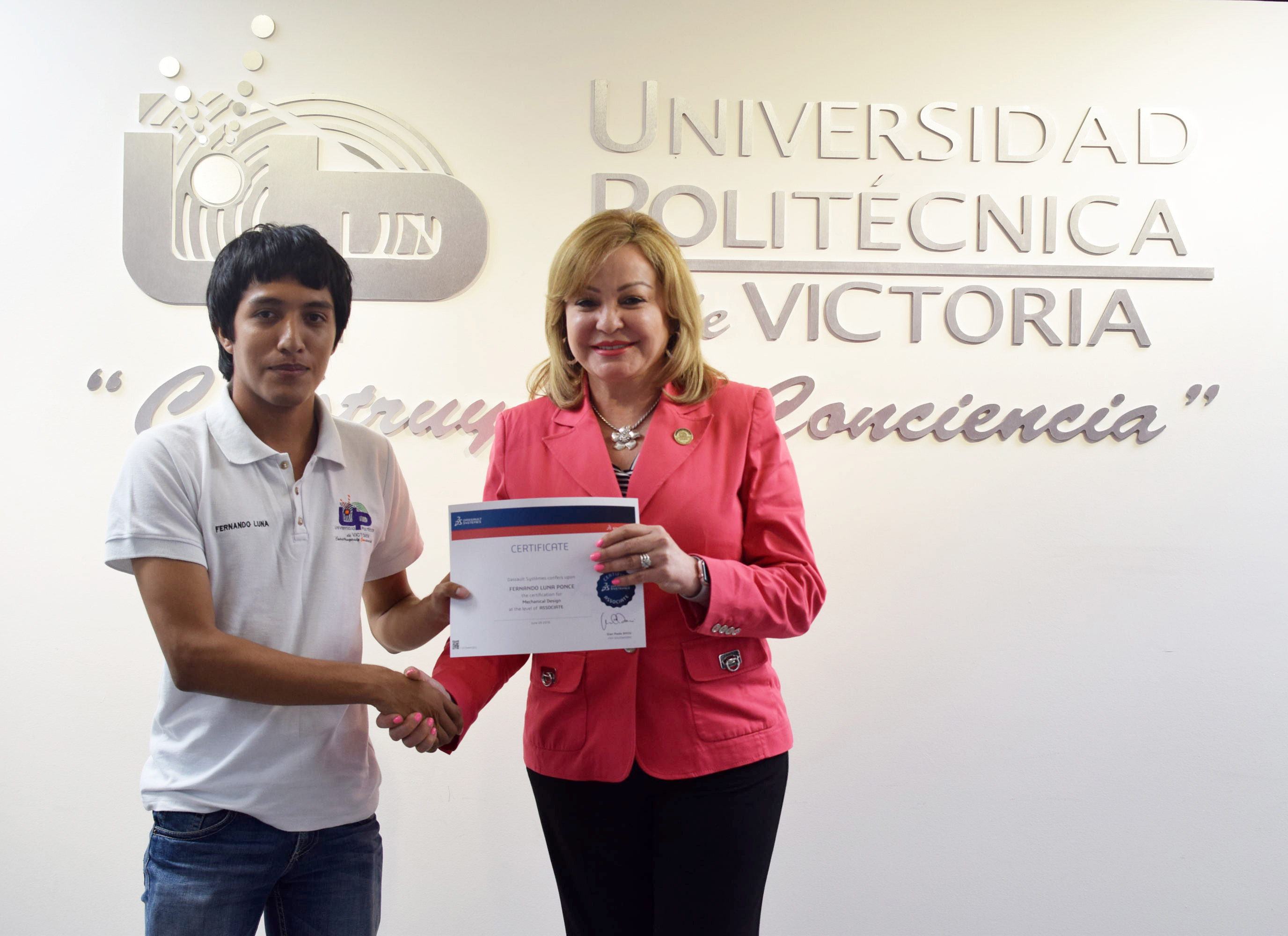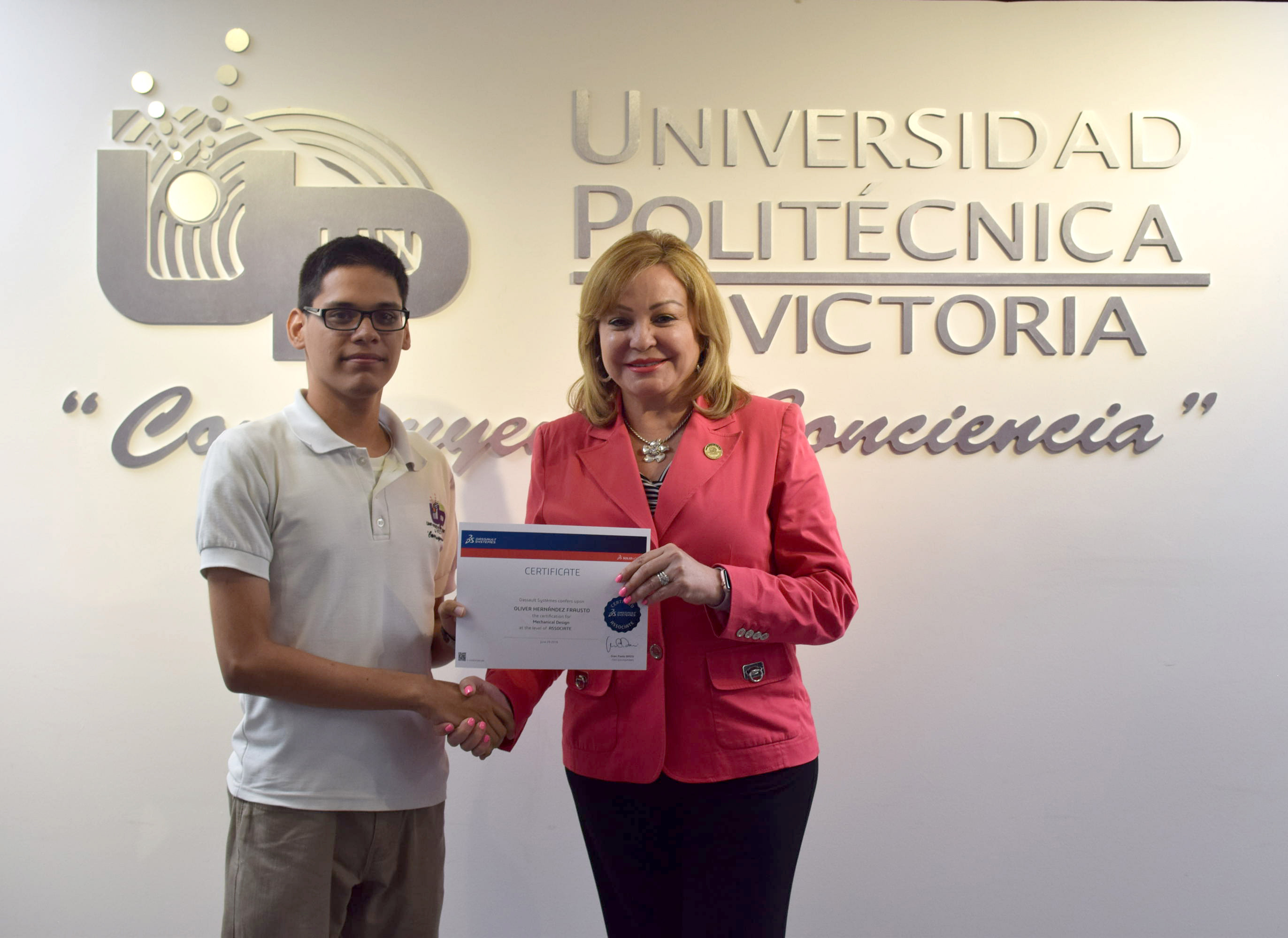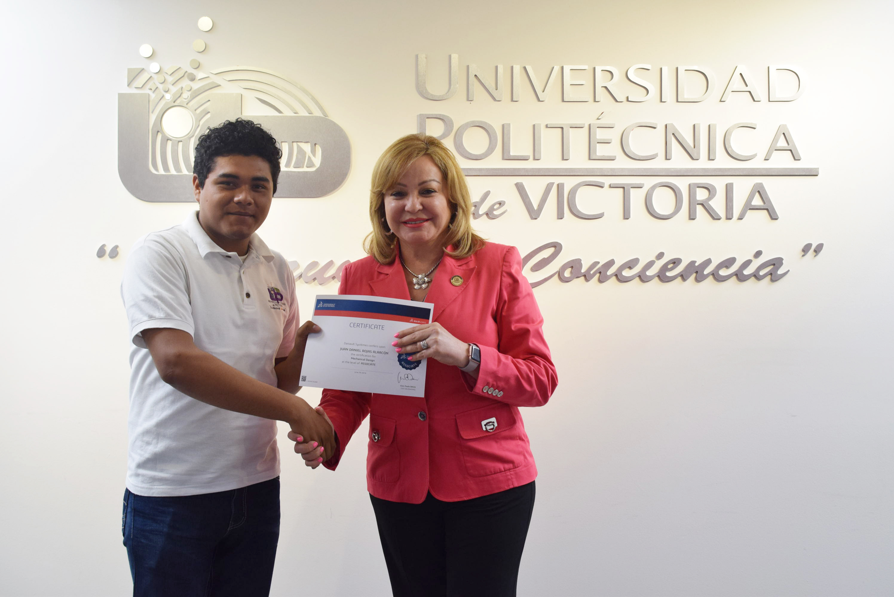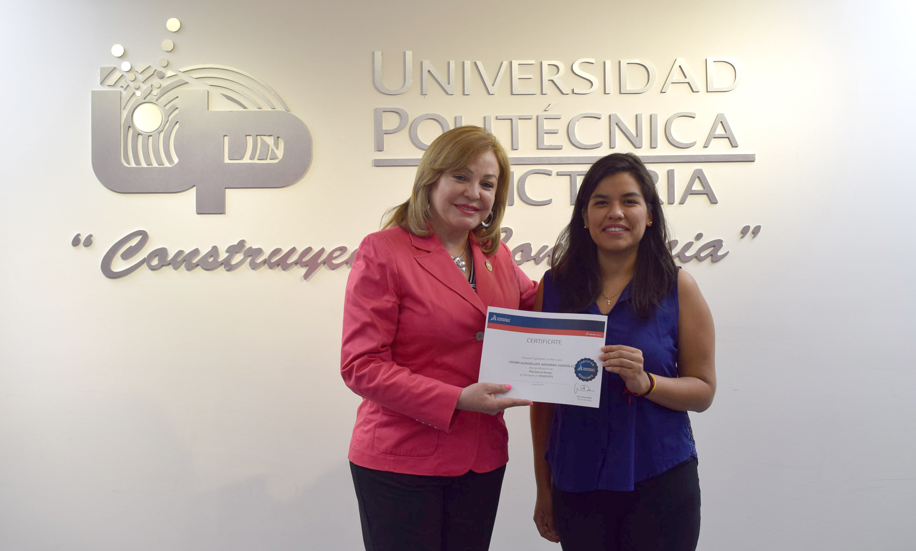 La Rectora de la Universidad Politécnica de Victoria (UPV) hizo entrega de 20 Certificados a igual número de destacados alumnos de los programas académicos de las Ingenierías Mecatrónica y Tecnologías de Manufactura, que presentaron y aprobaron la Certificación CSWA SolidWorks, que se suman a los 12 que obtuvieron dicha acreditación en diciembre de 2015.