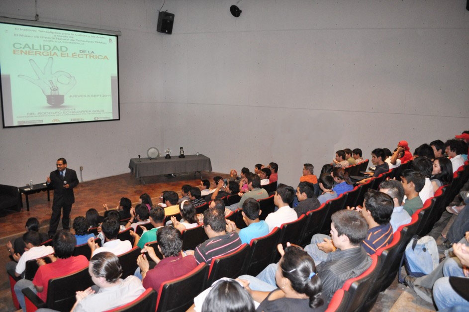 La historia, importancia y problemas que en la actualidad presenta la red eléctrica, así como el interés de los industriales por obtener el mejor servicio; fueron el tema central de la conferencia, “Calidad de la energía eléctrica” presentada en el Museo Tamux, por el Dr. Rodolfo Echavarría Solís, profesor investigador de la Universidad Politécnica de Victoria.