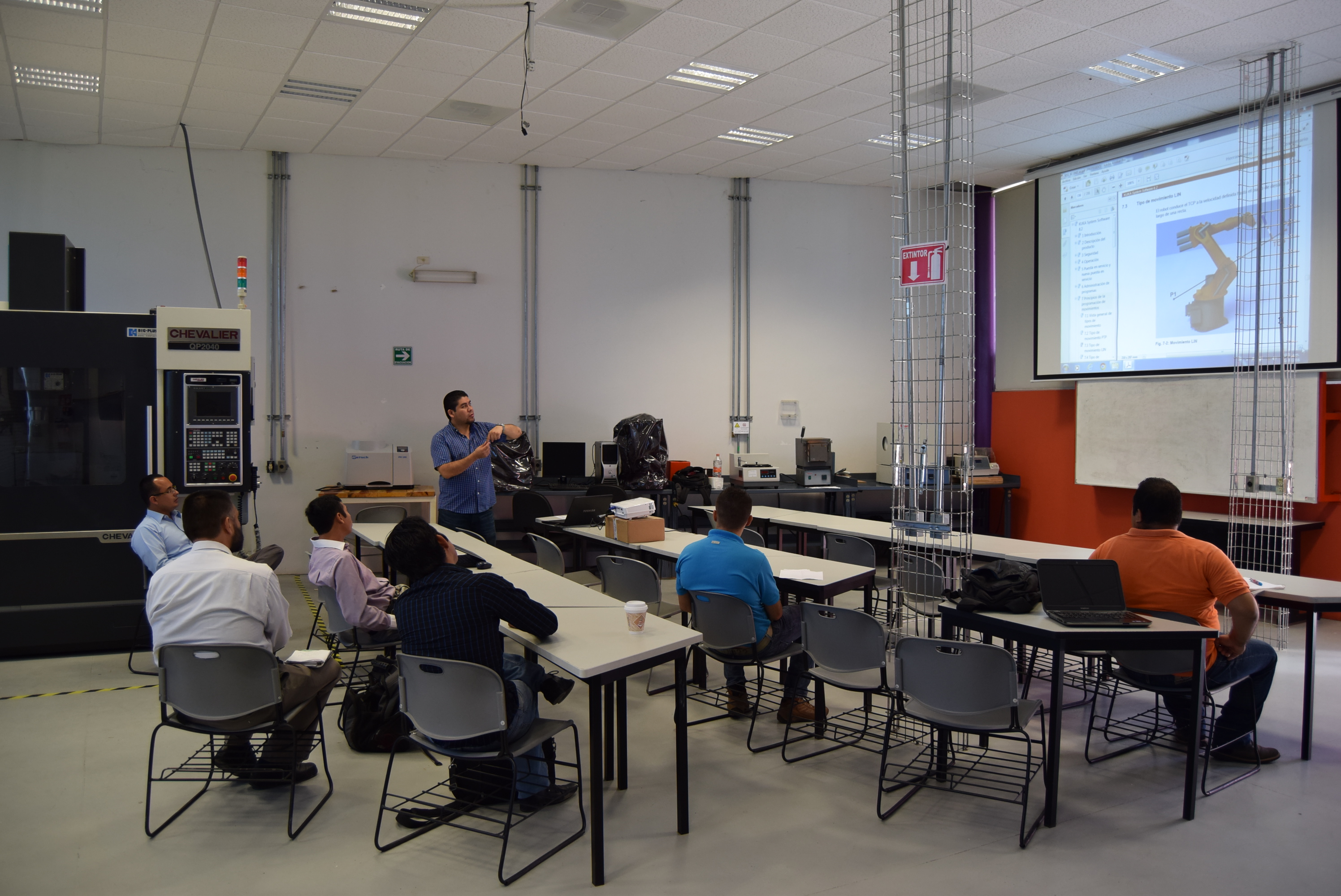 Indicó que la capacitación a los maestros se realizó sobre operación y programación de trayectorias de robots, la capacitación de programación y simulación de trayectorias, mediante el propio software especializado, se realizará en el mes de noviembre.