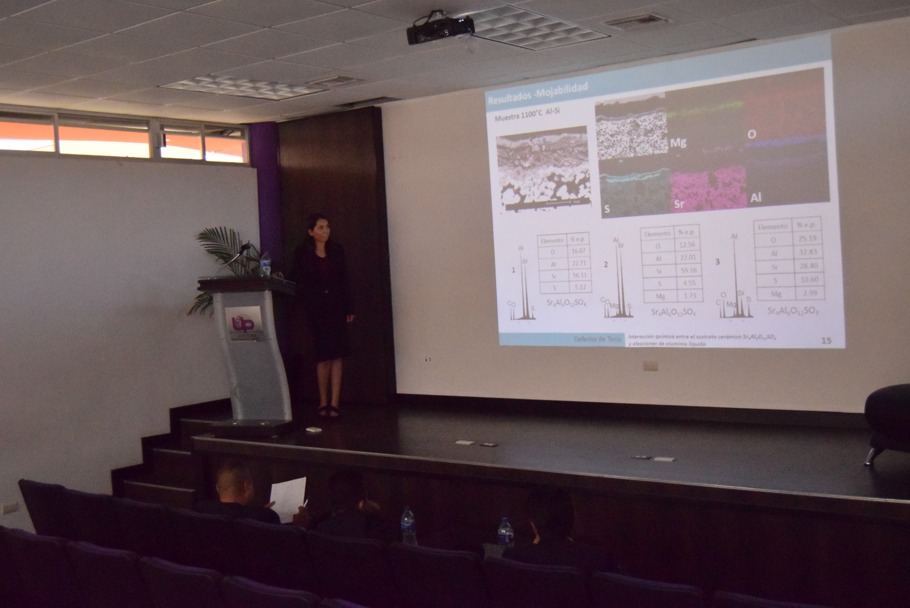 - La Ing. Estrella Guadalupe Ríos Rodríguez presentó su tesis sobre la interacción química del compuesto fabricado con aleaciones de aluminio líquido, que tienen diversos beneficios en la elaboración de refractarios para la industria de la fundición de aluminio, expresó la Rectora, Mtra. Sonia Maricela Sánchez Moreno.