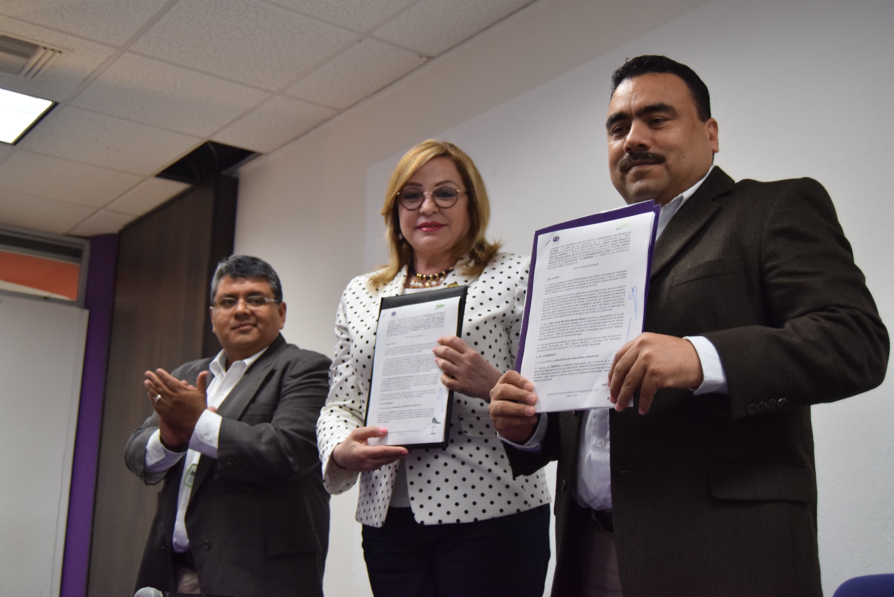 Con el objetivo de vincular a los estudiantes de la Universidad Politécnica de Victoria (UPV), con empresas en donde puedan realizar sus Estancias y Estadías, la Rectora Mtra. Sonia Maricela Sánchez Moreno firmó un Convenio de Colaboración con Valeo Sistemas Electrónica, de Río Bravo, Tamaulipas, representada por el Ing. Sergio Barroso Soto, H.R. Manager de la planta ubicada en ese lugar.