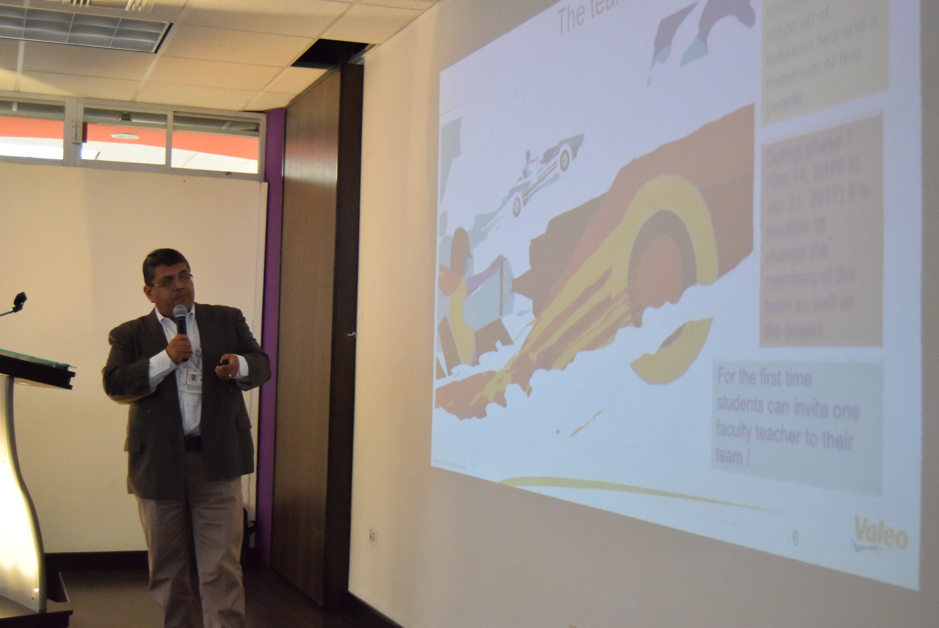 En el acto protocolario el LIc. Francisco Javier Hernández Hernández, Training Manager ofreció una plática sobre el Concurso Valeo Innovation Challenge 2017, cuyo propósito es reconocer un proyecto de innovación tecnológica relacionado al automóvil, en el campo de tecnología, o una nueva forma de uso de los automóviles, que se a producto de la imaginación de los estudiantes a nivel mundial.