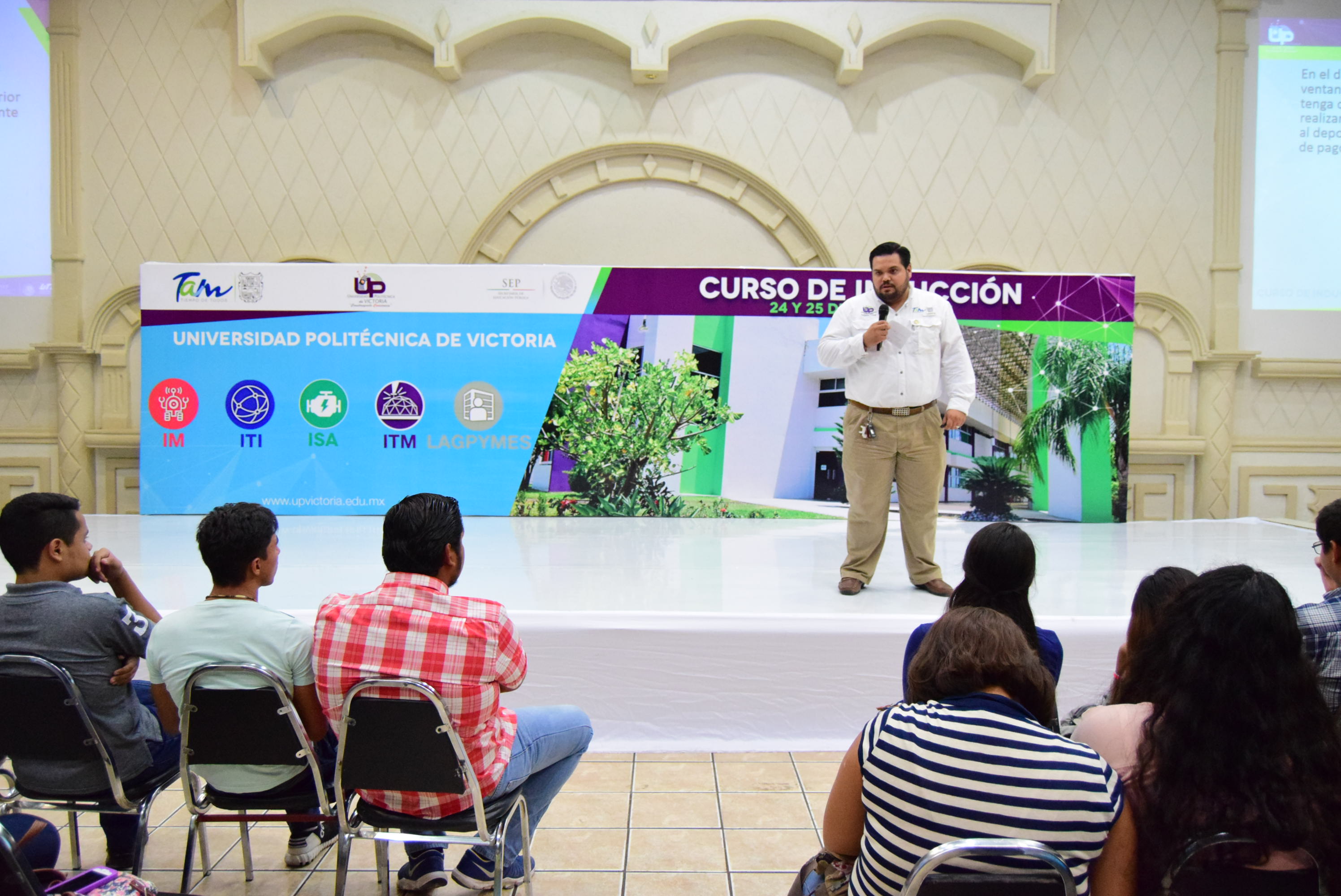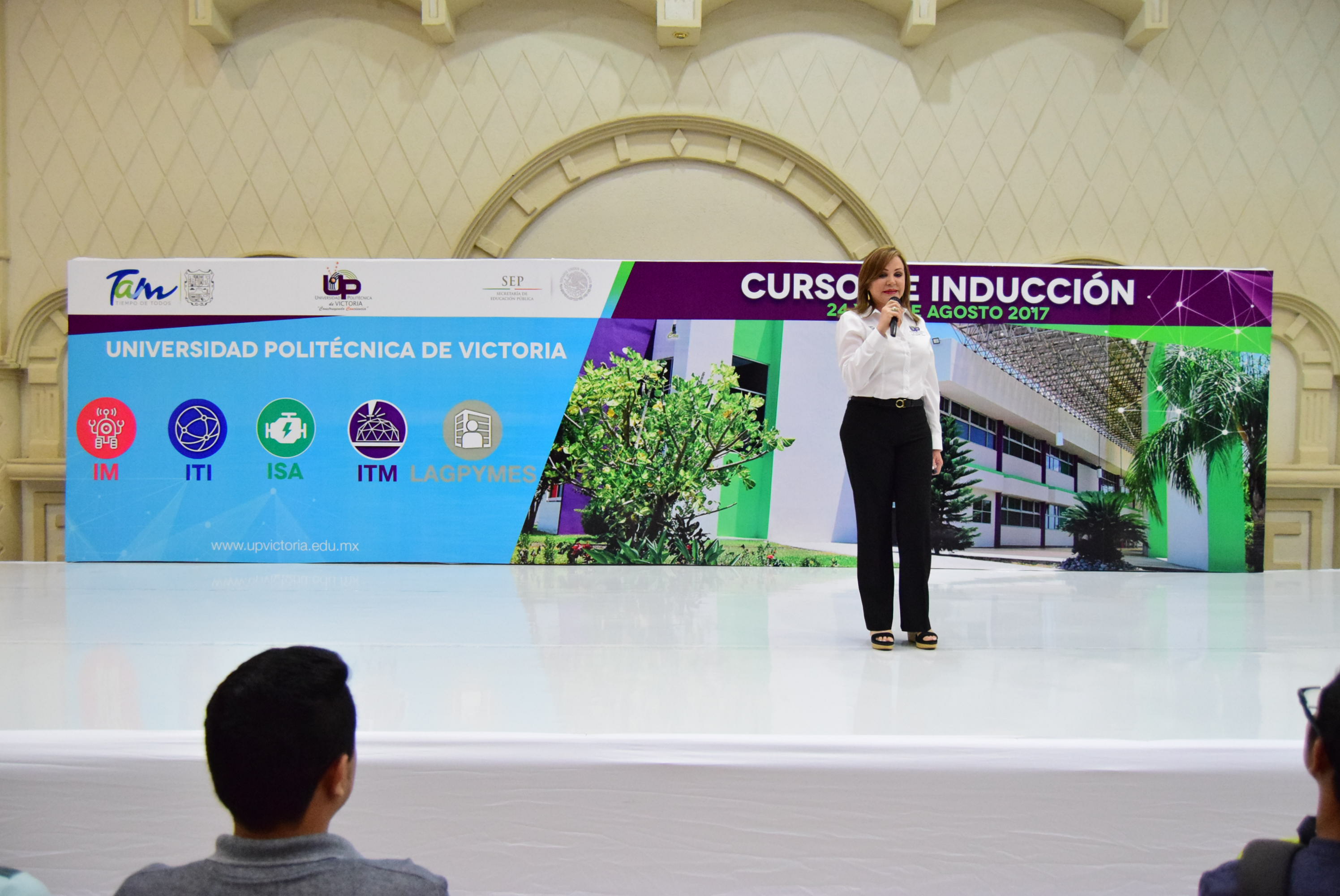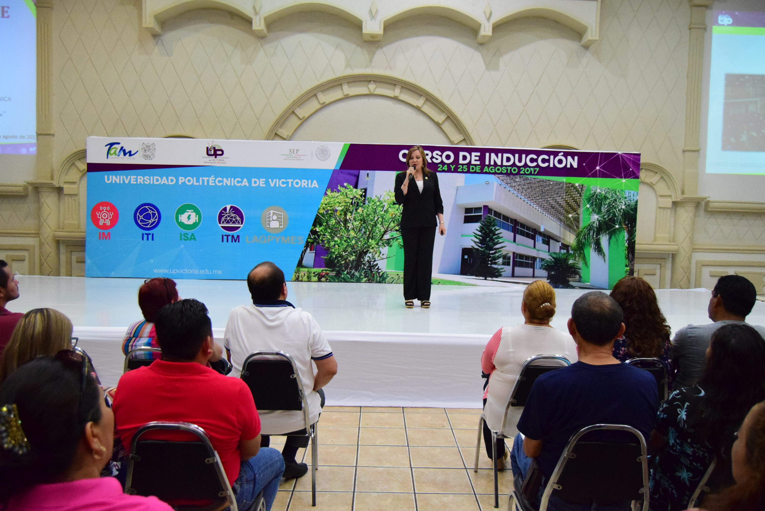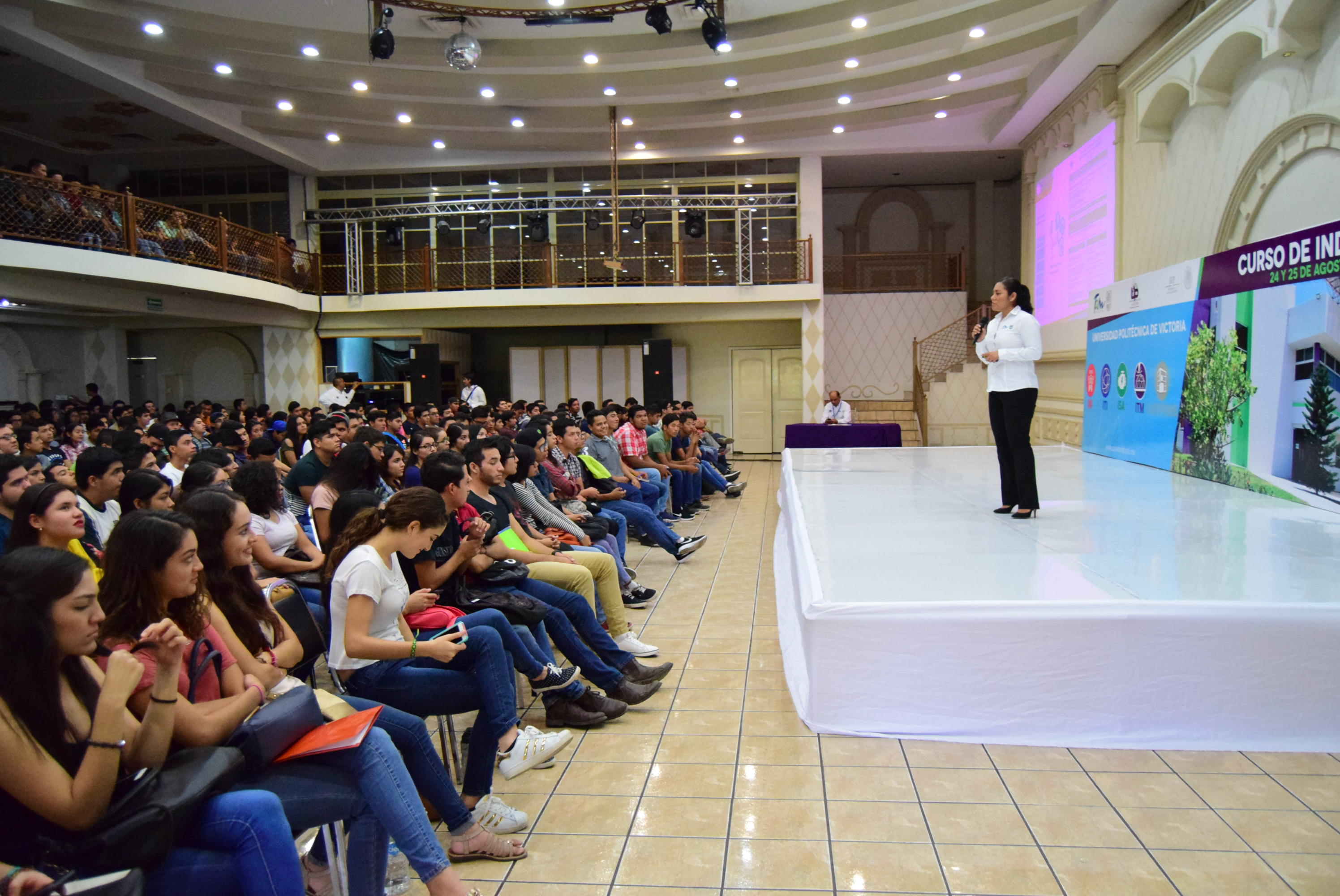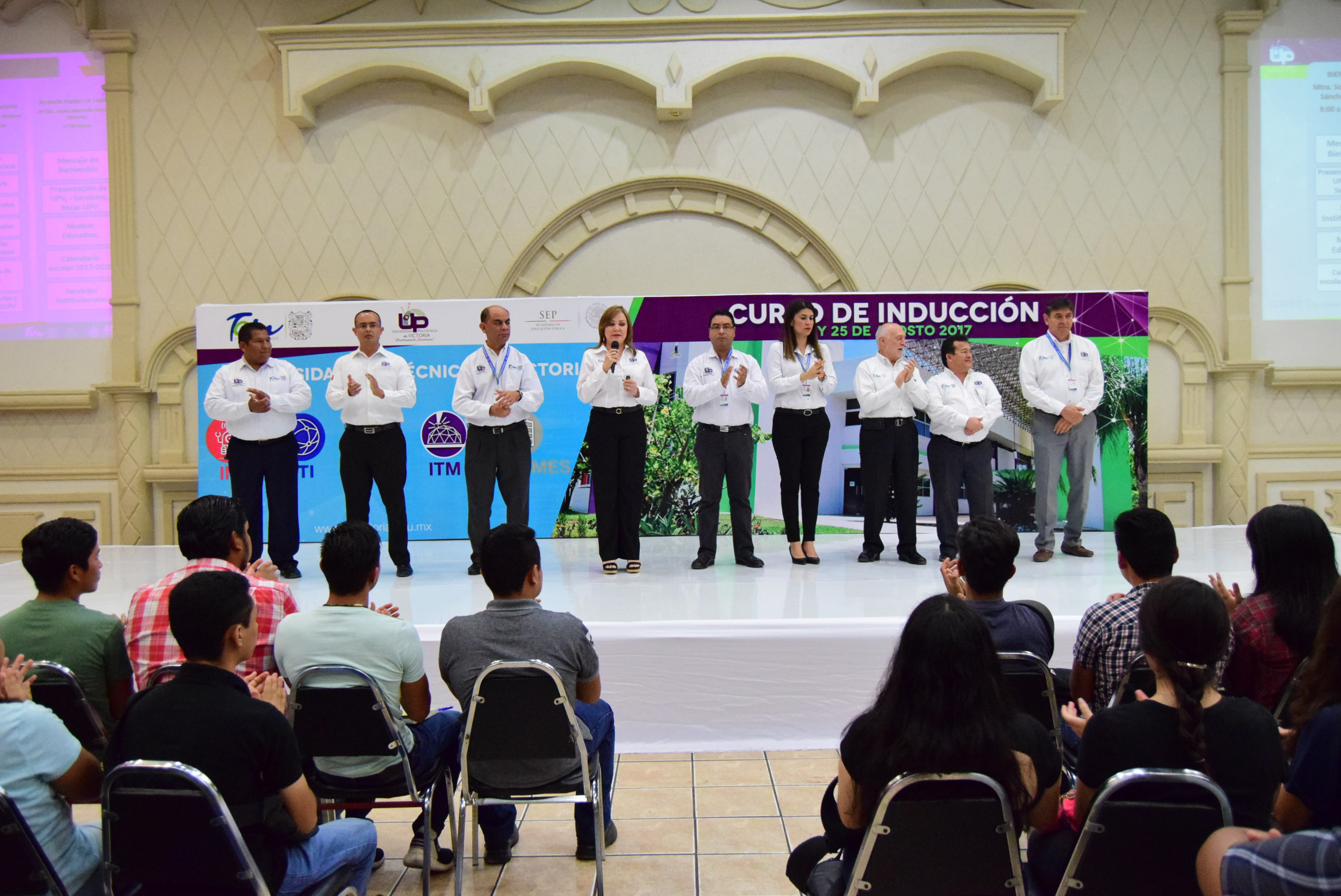 El Curso de Inducción para más de 500 alumnos de nuevo ingreso de la Universidad Politécnica de Victoria, que incluyó a los padres de familia, inició este día, cuando a nombre del Gobernador del Estado, Francisco García Cabeza de Vaca, la rectora Sonia Maricela Sánchez Moreno dio el mensaje de bienvenida, con una clara y amplia exposición sobre las metas y operatividad de la Institución.