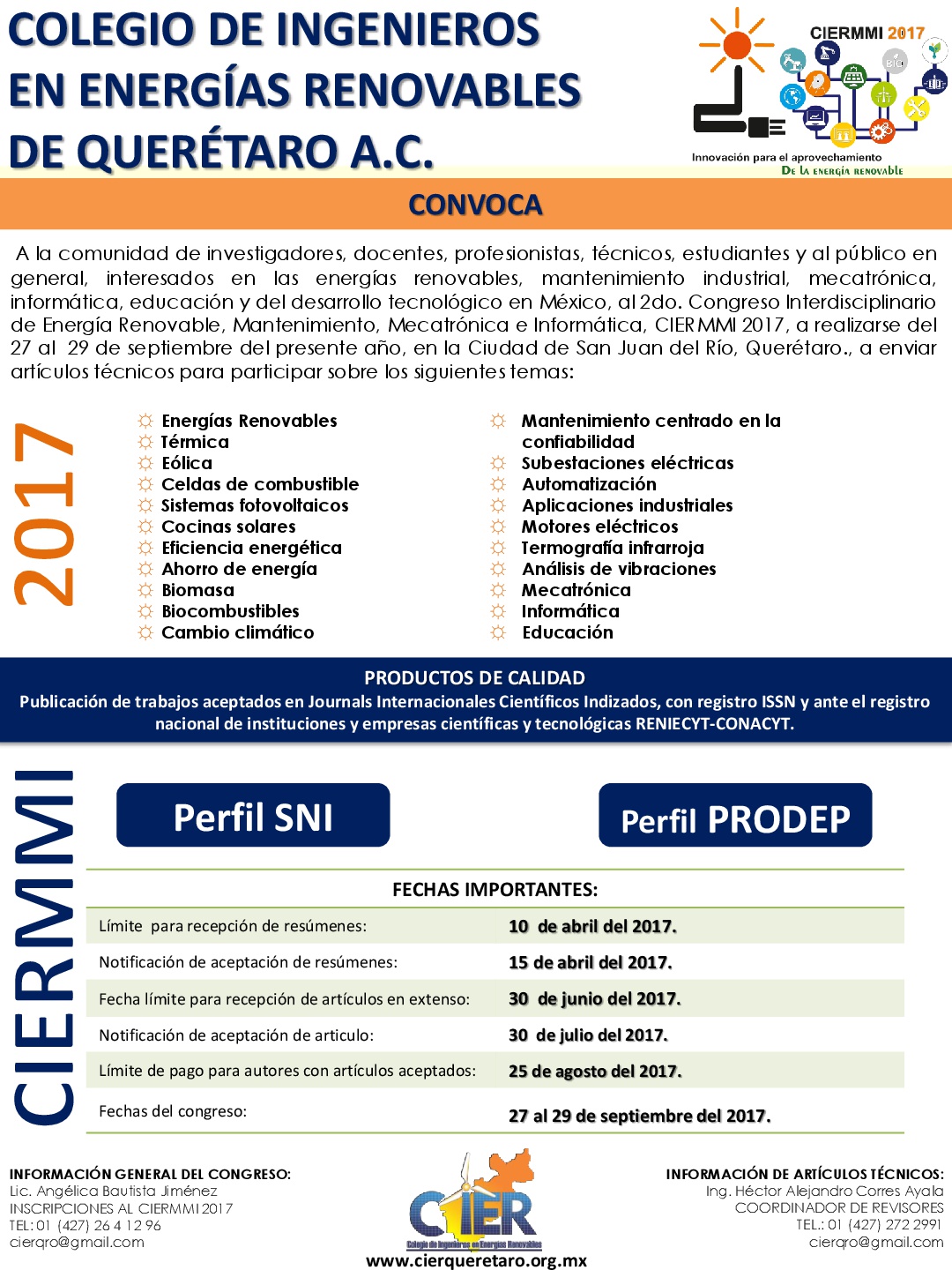 En este magno congreso organizado por el Colegio de Ingenieros en Energías Renovables de Querétaro A.C. se presentaron diversos artículos técnicos con temas como: Energías Térmica, Eólica, Celdas de Combustible, Ahorro de Energía, Análisis de Vibraciones, Mecatrónica, Informática, entre otros.