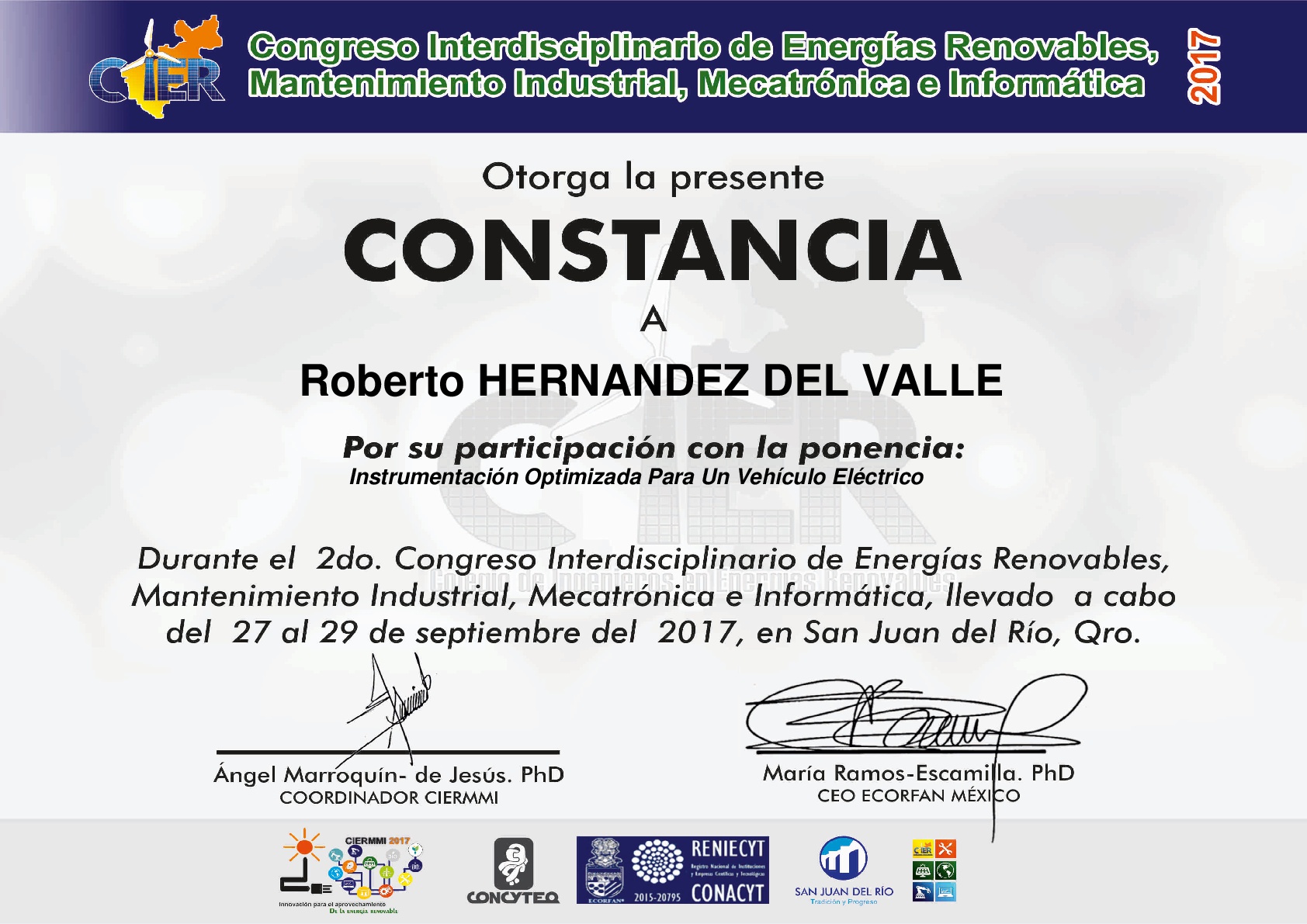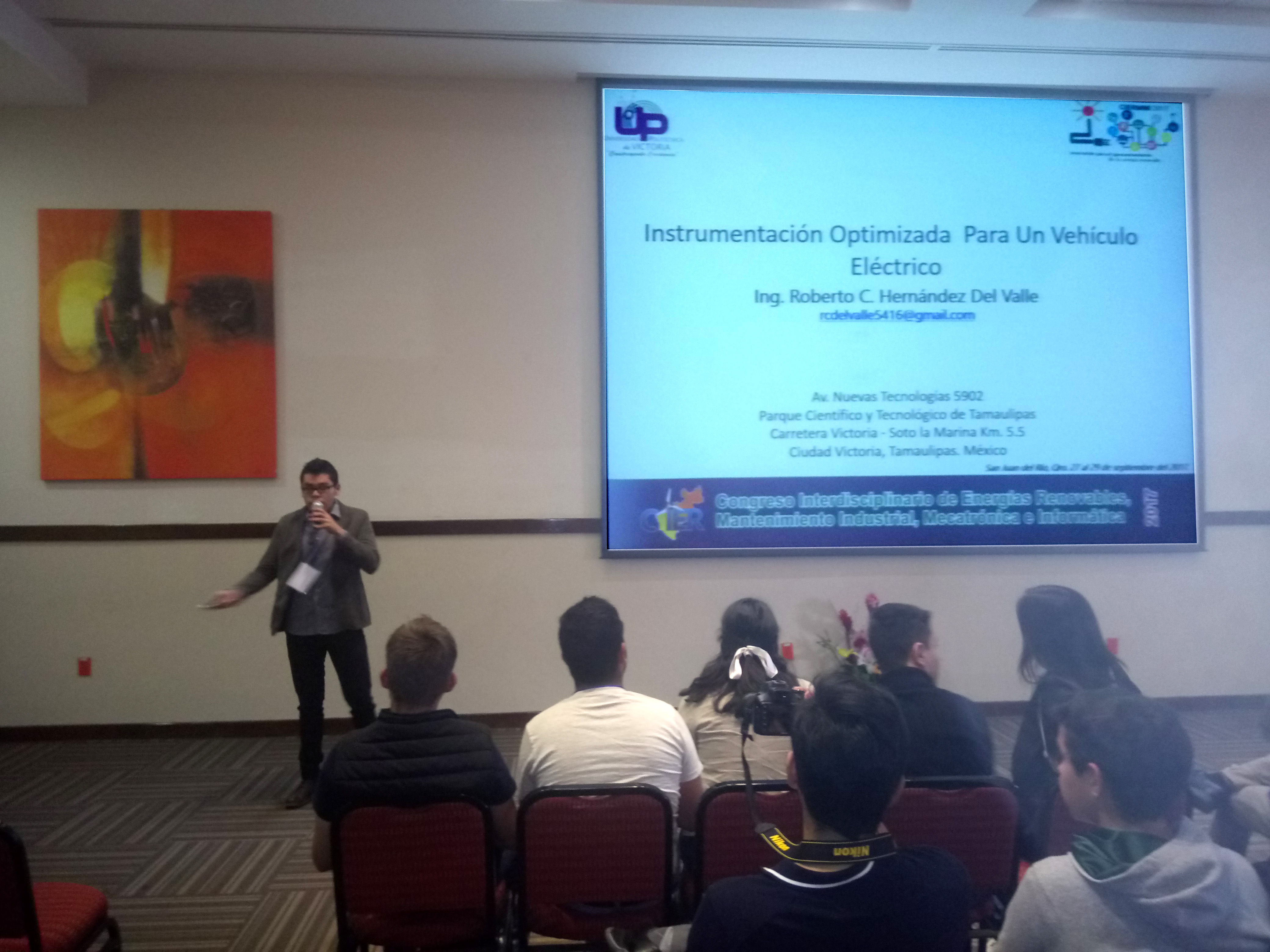 Roberto Hernández del Valle, alumno de posgrado de Maestría en Ingeniería, participó con el tema “Instrumentación Optimizada Para un Vehículo Eléctrico”,  en el evento celebrado  del 27 al 29 de septiembre del año en curso.