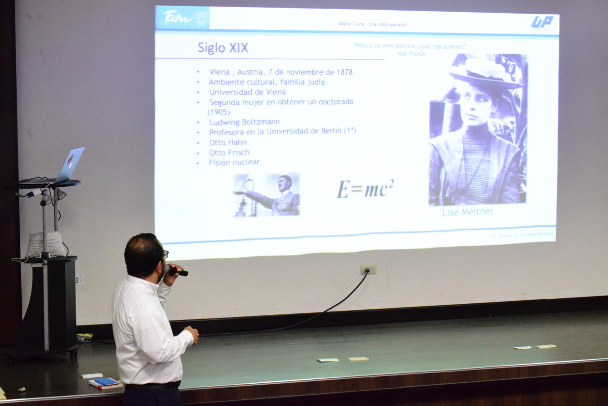 Por la tarde del mismo día dedicado a la mujer, el Dr. Rodolfo Echavarría Solís, profesor de tiempo completo de la UPV y Encargado del Posgrado de Energías Renovables dictó una conferencia sobre una de las mujeres que más beneficio ha dejado a la humanidad: Marie Curie, cuya vida ejemplar es digna de reconocimiento mundial.