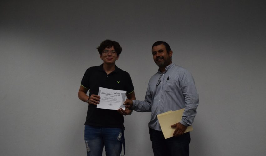 Al final de la demostración llevada a cabo en la explanada principal de la UPV, se trasladaron al Auditorio de la Institución, donde el Maestro Joel Ricardo Peña, a nombre de la Maestra Abril Alejandra Ramírez Erazo, Secretaría Académica, les hizo entrega de Reconocimientos a los alumnos de cada Proyecto y a sus Maestros.