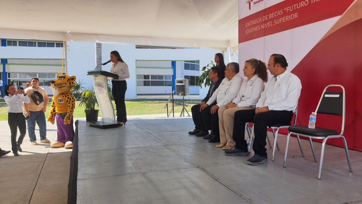 Al dar la bienvenida el Maestro Raúl Villanueva Niño, agradeció la presencia de las distinguidas personalidades y expresó la alegría de que 413 estudiantes de la UPV recibieran la «Beca Futuro Tamaulipas, Jóvenes de Nivel Superior», que con una inversión de 826 mil pesos se otorga como estímulo a estudiantes en situación económica adversa o de vulnerabilidad inscritos en instituciones Públicas de Educación Superior para iniciar o continuar sus estudios de nivel licenciatura que forma parte de la política educativa del Gobernador de Tamaulipas, Dr. Américo Villarreal Anaya, a través de la Secretaría de Educación de Tamaulipas y del ITABEC.