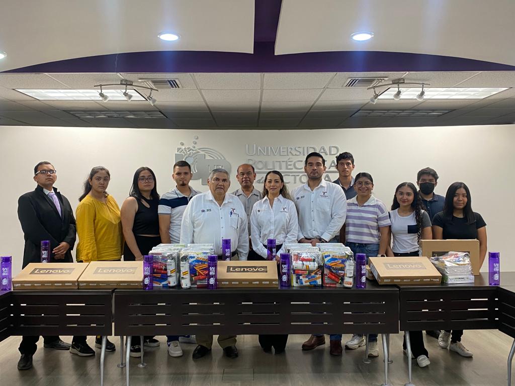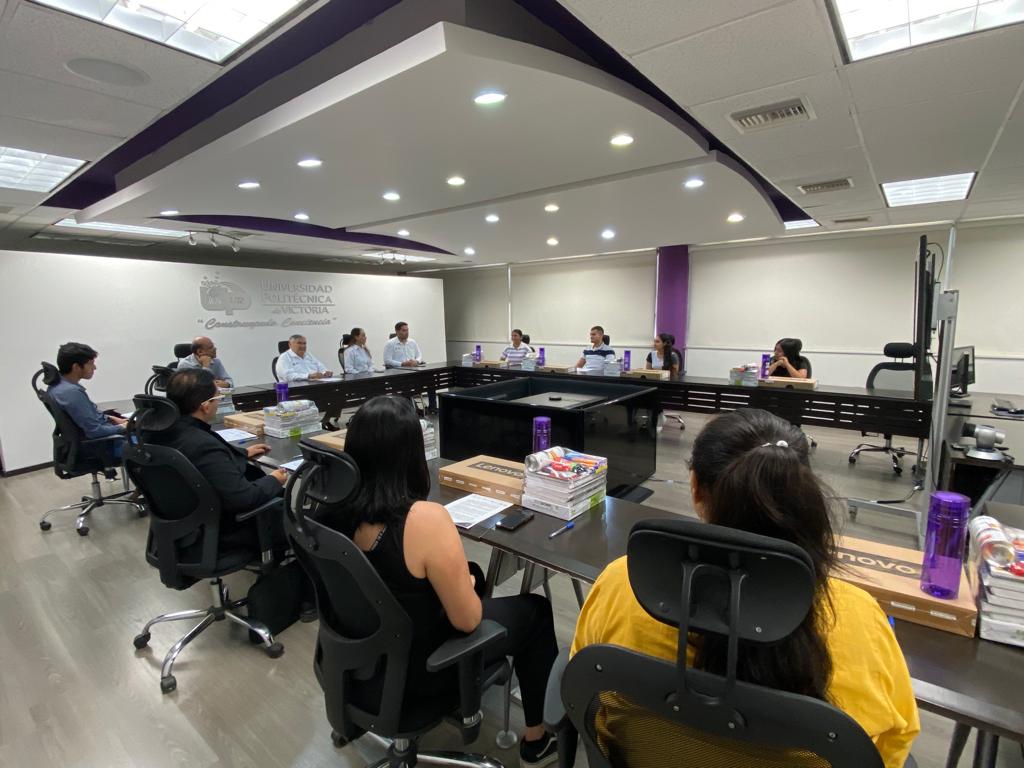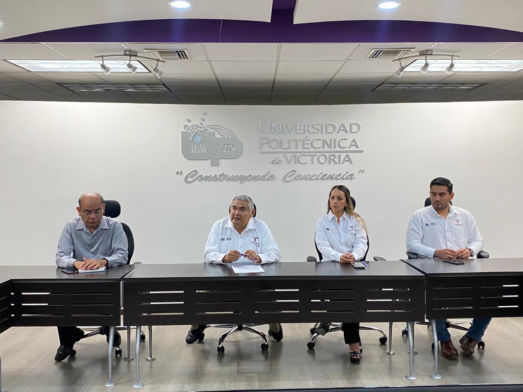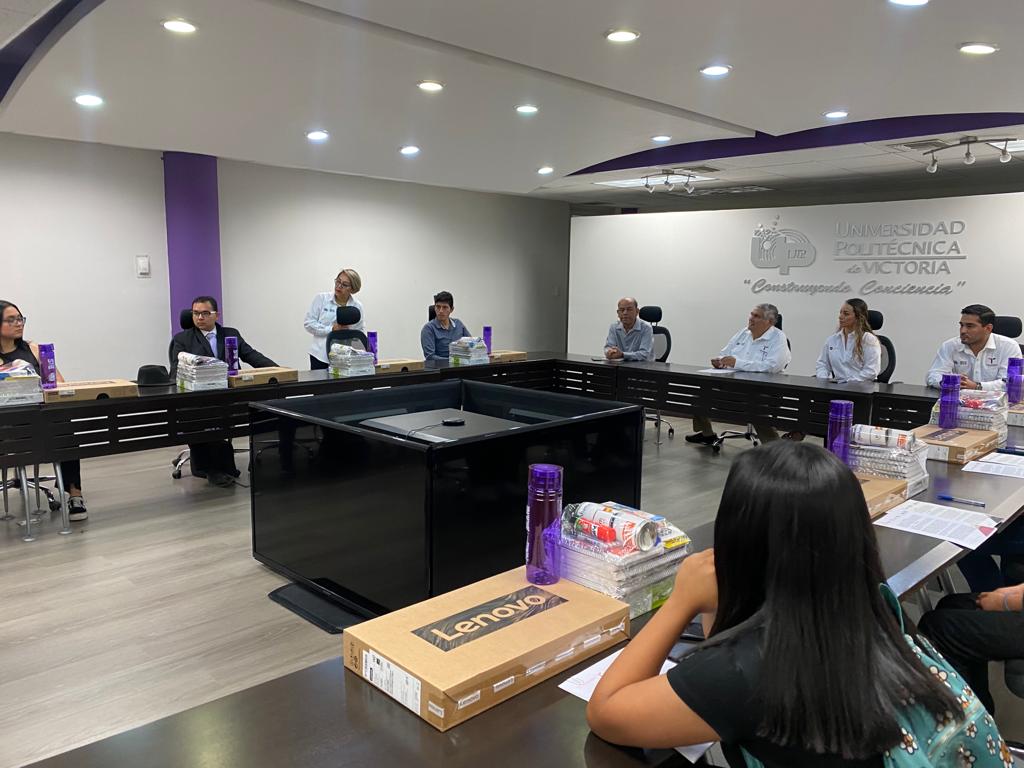 En la ceremonia estuvieron presentes: el Maestro Carlos Orozco García, titular del Programa Académico de Ingeniería Mecatrónica, la Lic. Elsa Margarita Garza Charles, Directora de Extensión Universitaria, la Lic. Adriana Maribel Sánchez Varela, Comisaria de la UPV, el Lic. Cesar Alejandro Morales Vogel y la Lic. Cindy Lizeth Martínez García, de la Oficina de Promoción.