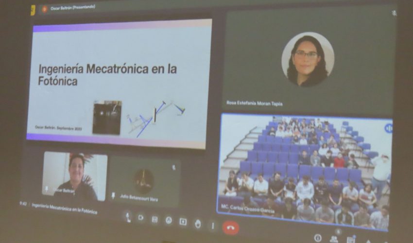 El 28 de septiembre del presente año se llevó a cabo en el auditorio de la Universidad Politécnica de Victoria (UPV), la videoconferencia titulada «Ingeniería Mecatrónica en la Fotónica» que fue impartida por el egresado del Programa de Ingeniería Mecatrónica M.C. Oscar Eduardo Beltrán Martínez. Al evento también asistió virtualmente el Dr. Julio Betancourt Vera, quien también es destacado egresado del mismo programa y actualmente desarrolla proyectos de investigación en Francia.