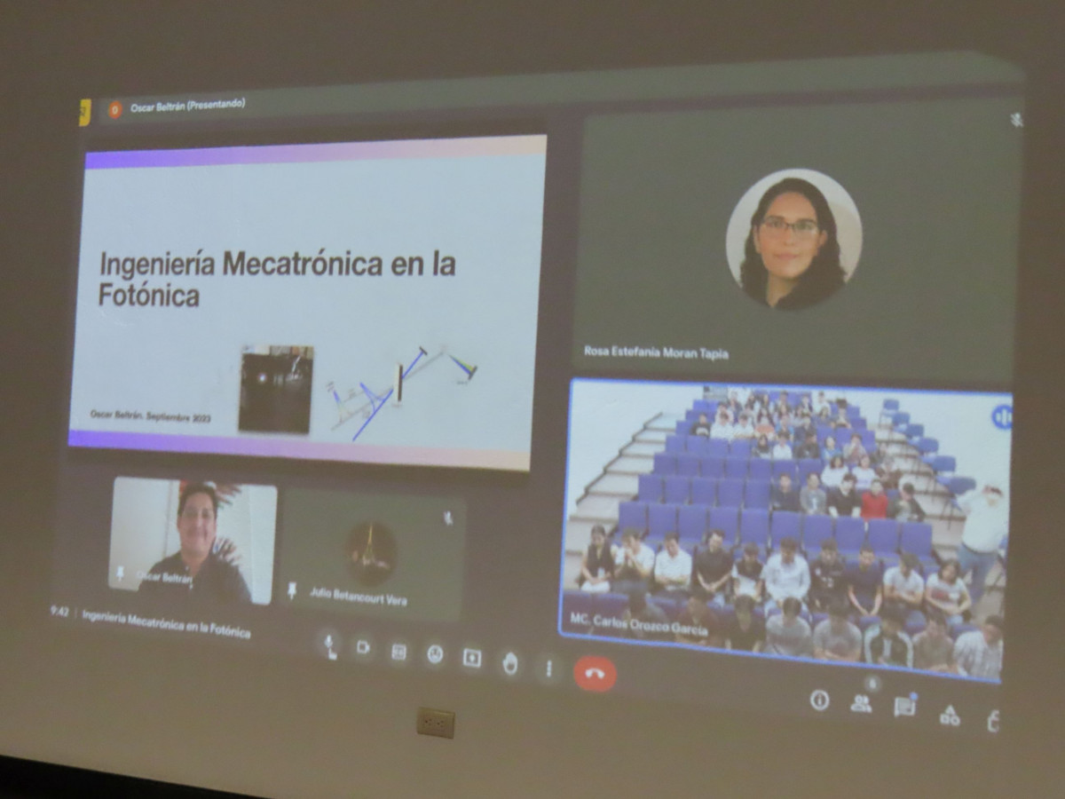 El 28 de septiembre del presente año se llevó a cabo en el auditorio de la Universidad Politécnica de Victoria (UPV), la videoconferencia titulada «Ingeniería Mecatrónica en la Fotónica» que fue impartida por el egresado del Programa de Ingeniería Mecatrónica M.C. Oscar Eduardo Beltrán Martínez. Al evento también asistió virtualmente el Dr. Julio Betancourt Vera, quien también es destacado egresado del mismo programa y actualmente desarrolla proyectos de investigación en Francia.