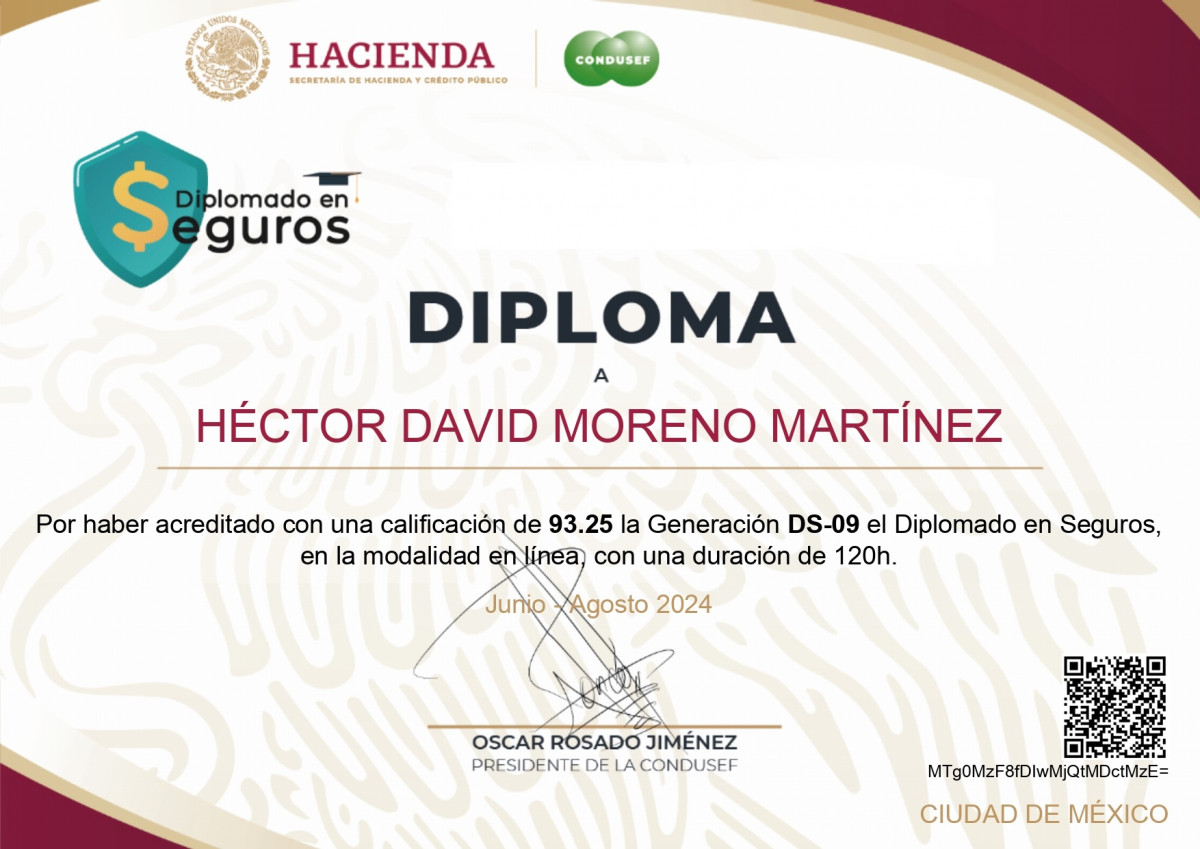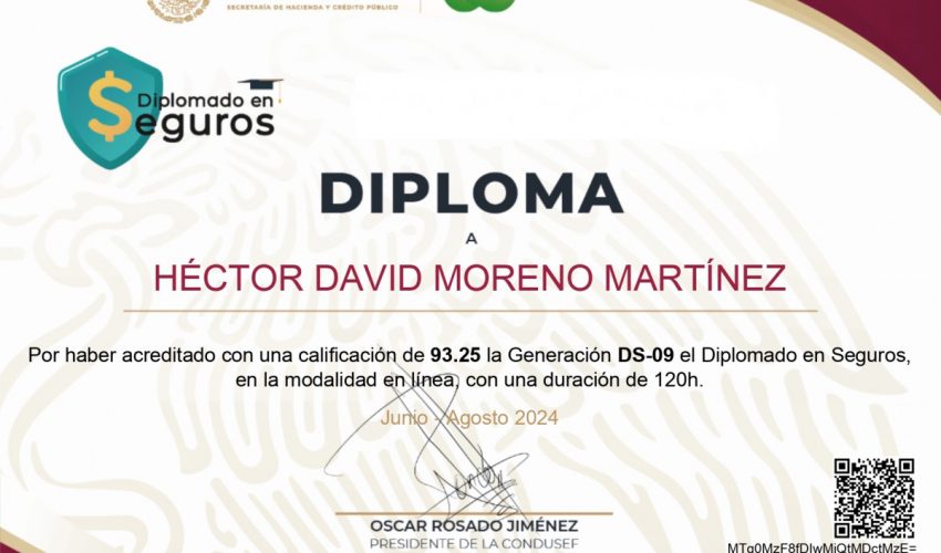 Adicional a lo anterior 7 estudiantes concluyeron el Diplomado en Seguros cuyo objetivo es proporcionar una visión general de lo que ha sido y es la Institución del Seguro en México, así como el marco conceptual y los conocimientos básicos relativos a los diversos tipos de seguros, con la comprensión de sus fundamentos técnicos, legales y comerciales.