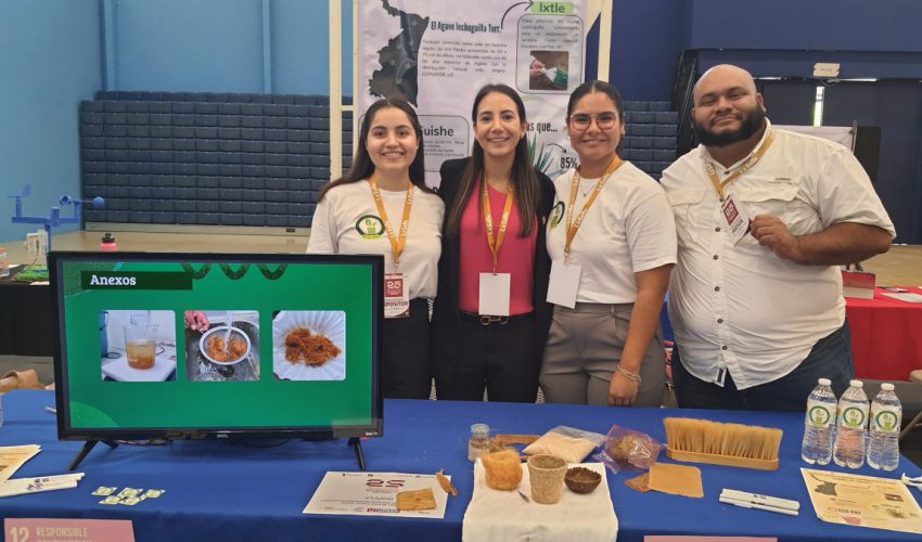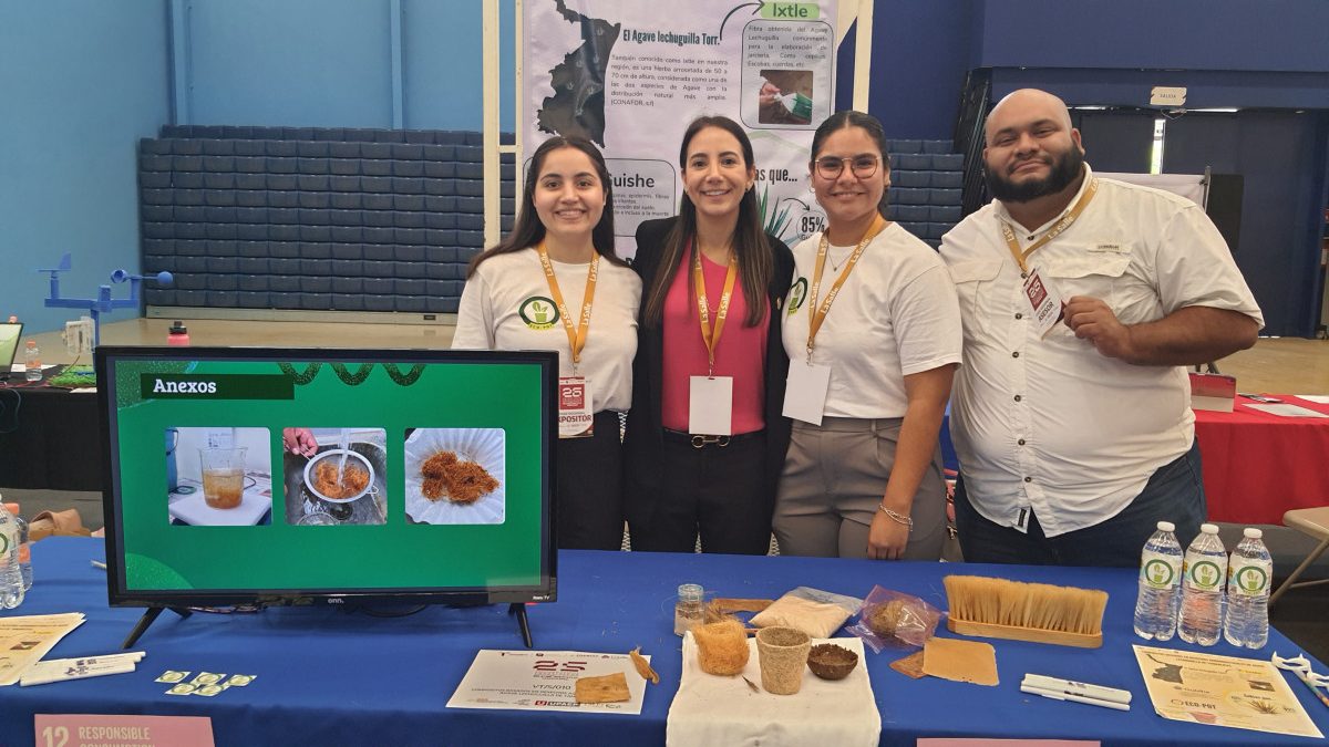 Otro proyecto presentado en la ExpoCiencias 2024 fue el de “Compósitos Basados en Desechos Agroindustriales de Agave Lechuguilla de Tamaulipas” Realizado por Alejandra Carolina Rodríguez Porras y Ana Patricia Sánchez Peña, con la asesoría del Dr. José Adalberto Castillo Robles.