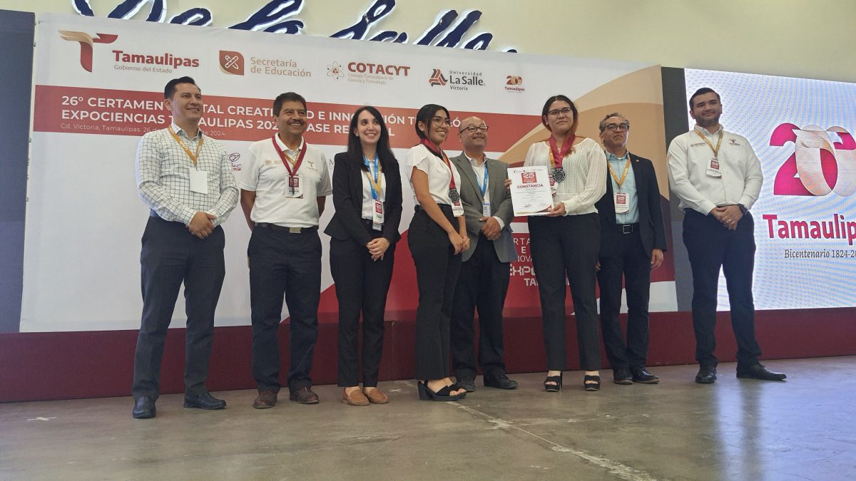 Asimismo, se presentaron Proyectos en la categoría Superior, donde el segundo lugar fue para la Universidad Politécnica de Victoria, con: “Desarrollo de Semiconductores a Base de TiO2/Cu para la Descontaminación Fotocatalítica del Agua”, realizado por las estudiantes de noveno cuatrimestre de Ingeniería en Tecnologías de Manufactura BIS, Dafne Rubí Porras Herrera y Debany Yulissa Salazar, con la asesoría del Dr. Enrique Rocha Rangel.