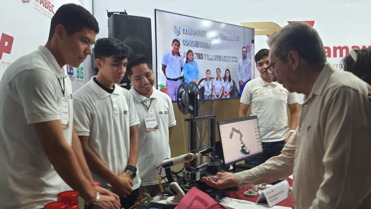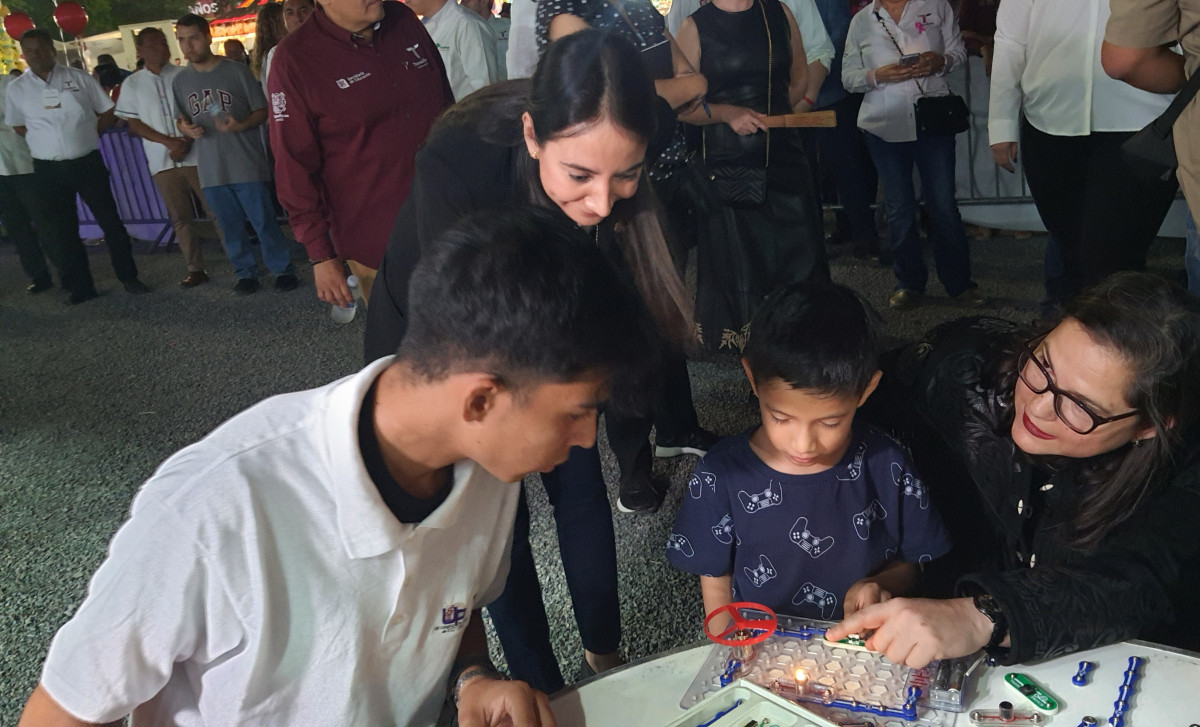 En su visita al stand de la UPV el Gobernador Villarreal Anaya y la Secretaria de la SET Castillo Pastor, así como la Rectora Ramírez Erazo interactuaron con un grupo de niños que recibían indicaciones sobre juegos electrónicos, con los cuales mostraron su inicial gusto por la ciencia y la tecnología.