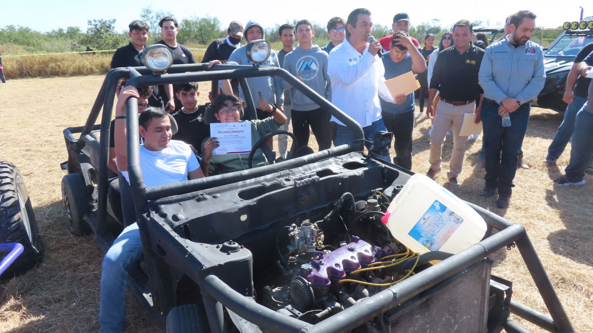 Momentos después se realizó en el campo de fútbol soccer, habilitado como pista, la Exhibición de Buggys y Go Karts, denominada Grand Prix UPV a cargo de las y los estudiantes del programa académico de Ingeniería en Sistemas Automotrices (ISA), bajo la dirección de Joel Peña Mercado, con la asistencia de vehículos del Moto Club Sierra Madre y su presidente Germán Dávila.