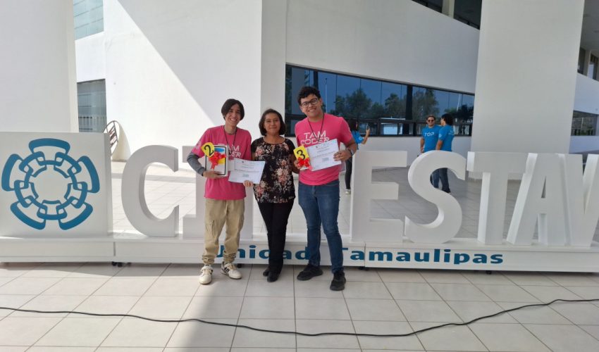 Los universitarios politécnicos Adrián Alejandro, Jesús David Treviño y Joshua Nathaniel superaron una exigente primera etapa y llegaron a la fase final, celebrada el pasado 14 de noviembre en las instalaciones del Cinvestav Unidad Tamaulipas, en Ciudad Victoria, en donde pusieron a prueba las habilidades técnicas y lógicas mediante retos complejos, diseñados para ser resueltos en los lenguajes de programación C, C++ y Java.