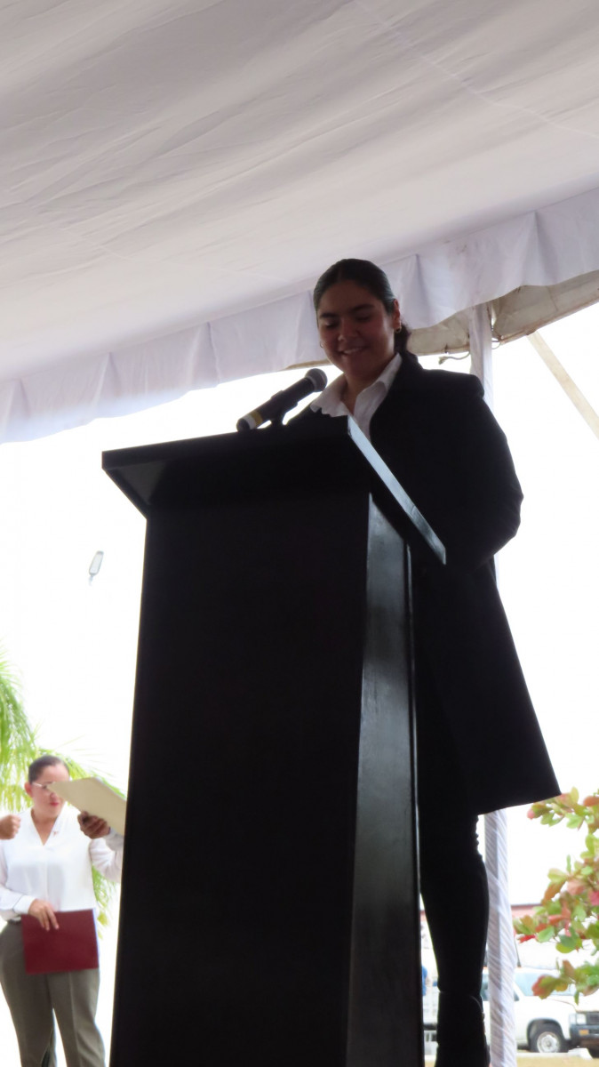 La estudiante Ana Patricia Sánchez Peña, del noveno cuatrimestre del programa académico de Licenciatura en Comercio Internacional y Aduanas (LCIA), a nombre de todos sus compañeros, agradeció el apoyo del Gobernador Villarreal Anaya a través de la Secretaria Lucía Aimé Castillo Pastor y del Director del ITABEC, Juan Mansur Arzola, “por sembrar esperanza en cada uno de nuestros proyectos, por enseñarnos que, con esfuerzo conjunto, podemos superar cualquier barrera. Reiteramos nuestro compromiso de trabajar con dedicación, perseverancia y responsabilidad”, para luego decir: “otra vez gracias, juntos sigamos transformando el futuro de Tamaulipas a través de la educación”.