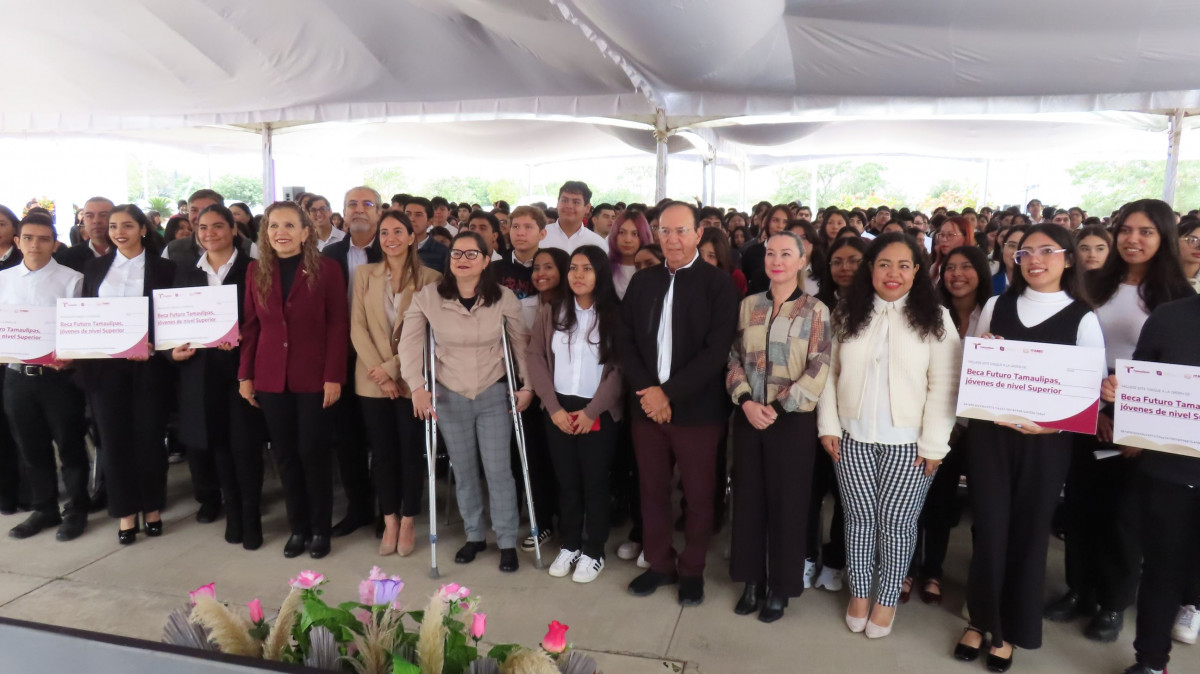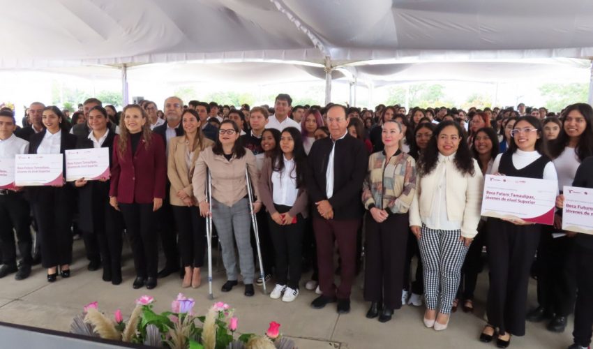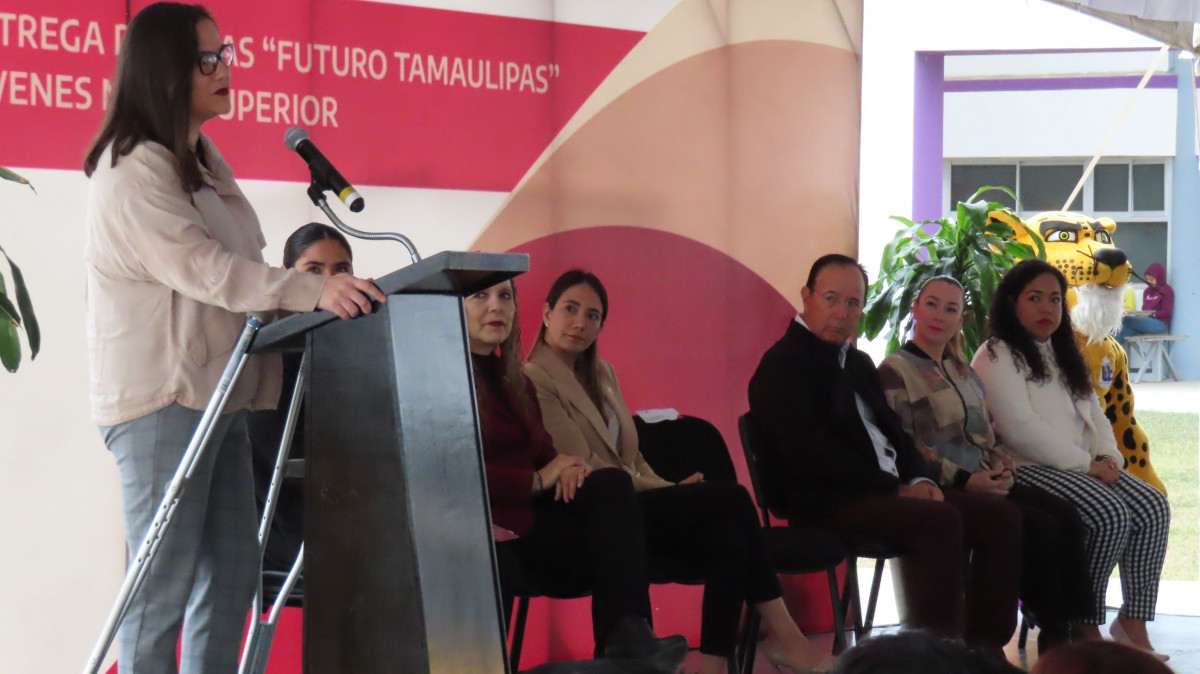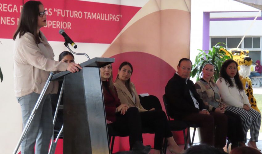 La Secretaria Lucía Aimé Castillo Pastor invitó a los estudiantes beneficiarios a fortalecer el compromiso, así como a redoblar esfuerzos por la obtención de la beca “Futuro Tamaulipas, Jóvenes de Nivel Superior”, al mencionar que la Presidenta de la República, Claudia Sheinbaum Pardo, es decidida impulsora de la juventud y de la educación superior, además de señalar que “ ustedes, los estudiantes, son tierra fértil para construir un mejor mañana y los abrazamos”, para luego afirmar que todos juntos lograremos ese propósito.
