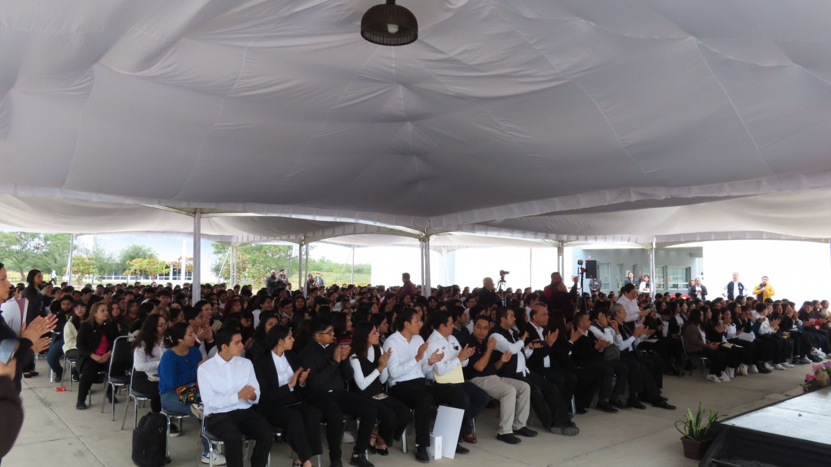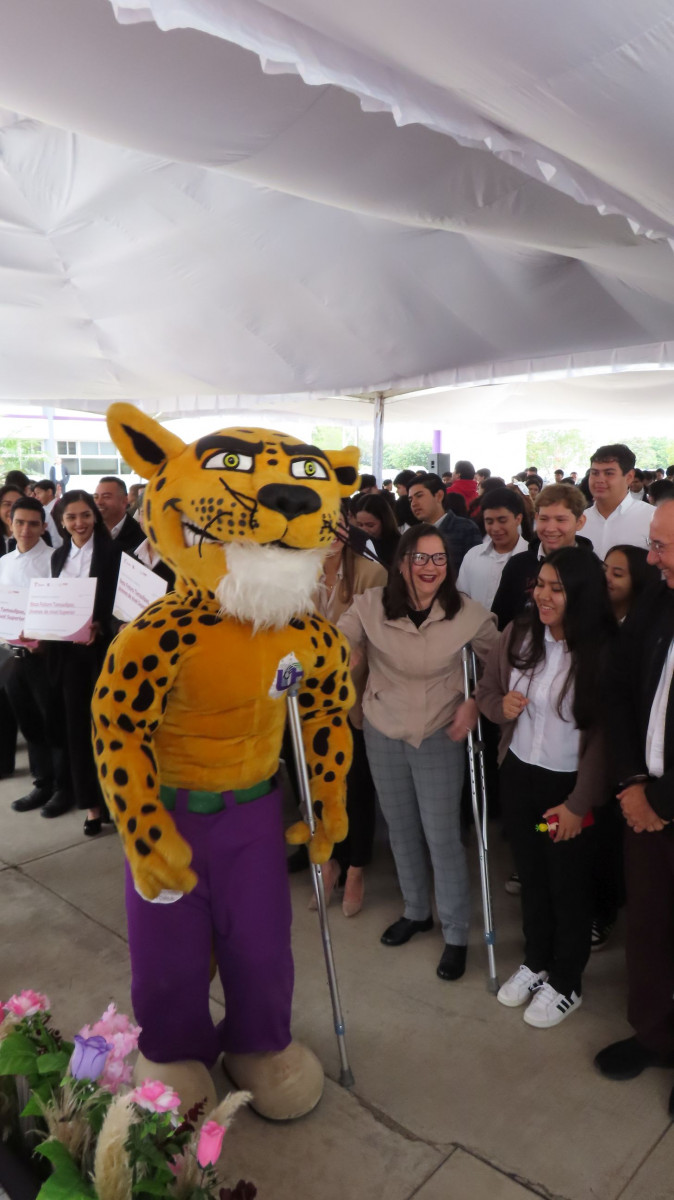 Las becas se entregaron en forma simbólica a un representante de cada programa académico; Abraham Adolfo Villanueva Vázquez de Ingeniería Mecatrónica, Barbie Viridiana Lumbreras Olvera de Ingeniería en Tecnologías de la Información e Innovación Digital, Aitor Alfonso Segura Hernández de Ingeniería en Tecnologías de Manufactura, Fernanda Monserrat Vargas Mata de LAYGE, Jesús Amado Guajardo Flores de Ingeniería en Sistemas Automotrices y Ana Patricia Sánchez Peña de Licenciatura en Comercio Internacional y Aduanas.