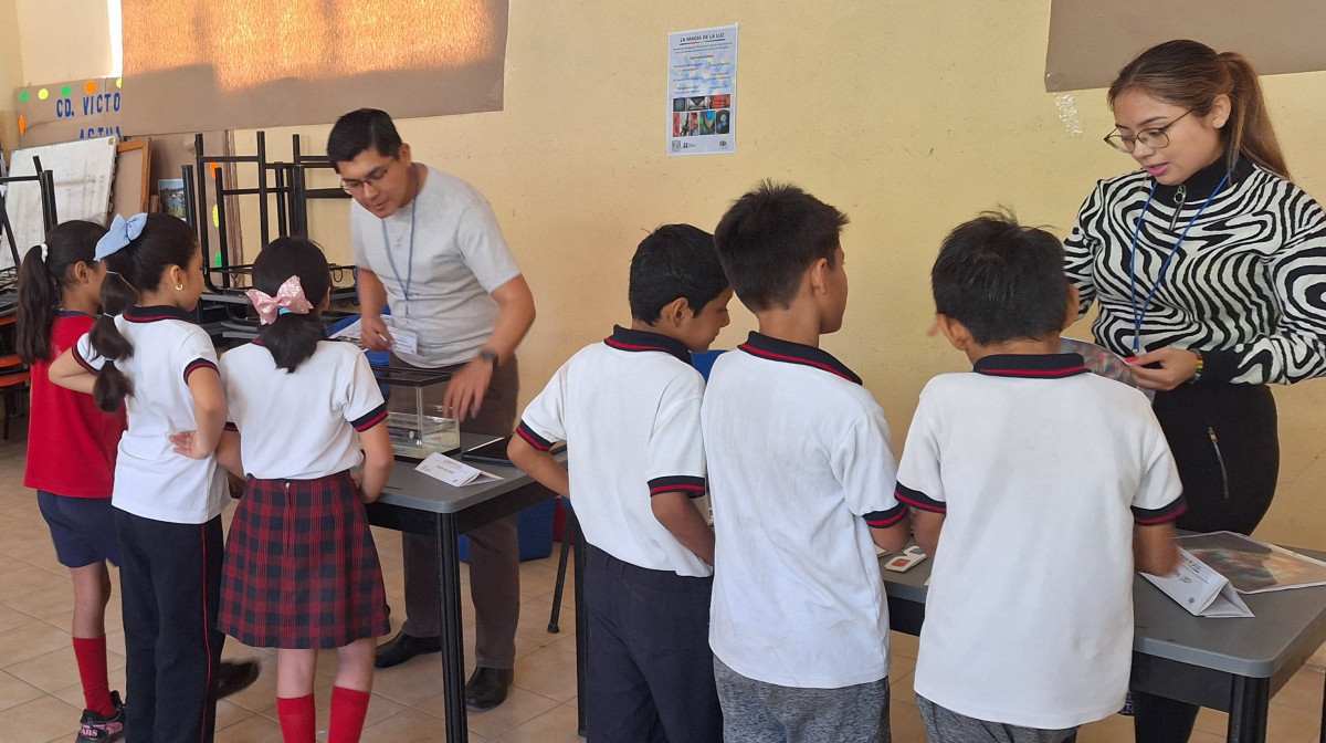 Como parte del proyecto “La magia de la luz. Acercando la ciencia y tecnología de la luz a los jóvenes estudiantes del estado de Tamaulipas” que lleva a cabo el Maestro Rodolfo A. Carrillo Betancourt, a través del Instituto de Investigaciones en Materiales de la Universidad Nacional Autónoma de México (IIM-UNAM), en colaboración con la Universidad Politécnica de Victoria (UPV), estudiantes del programa académico de Ingeniería Mecatrónica asistieron a la escuela primaria “Ignacio José Allende”, de esta Capital tamaulipeca.