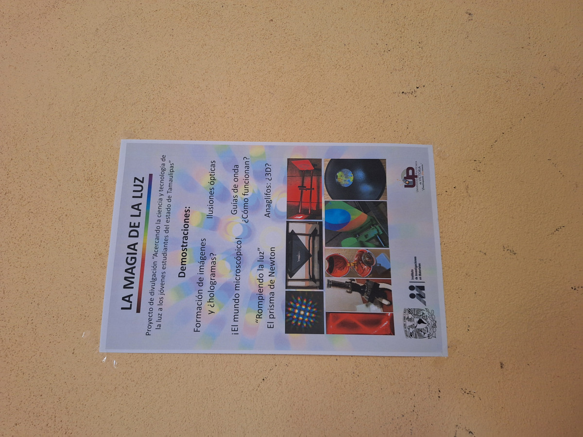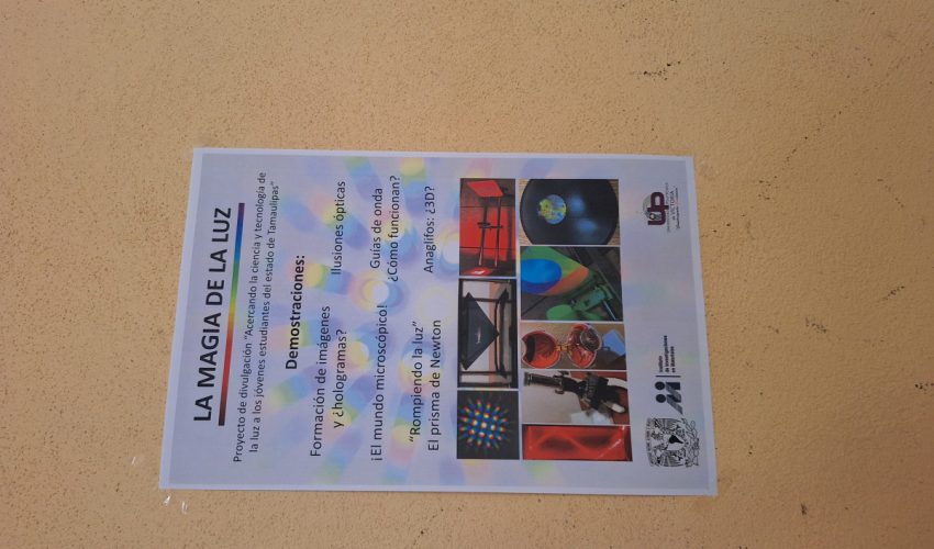 El proyecto tiene el objetivo de dar a conocer la óptica y fotónica con el fin de inspirar a niñas y niños, al crear curiosidad en estos temas. La actividad del proyecto consiste en asistir a escuelas de nivel básico y desarrollar demostraciones sobre dispersión de la luz, formación de imágenes, microscopía, guías de onda, anaglifos y hologramas.