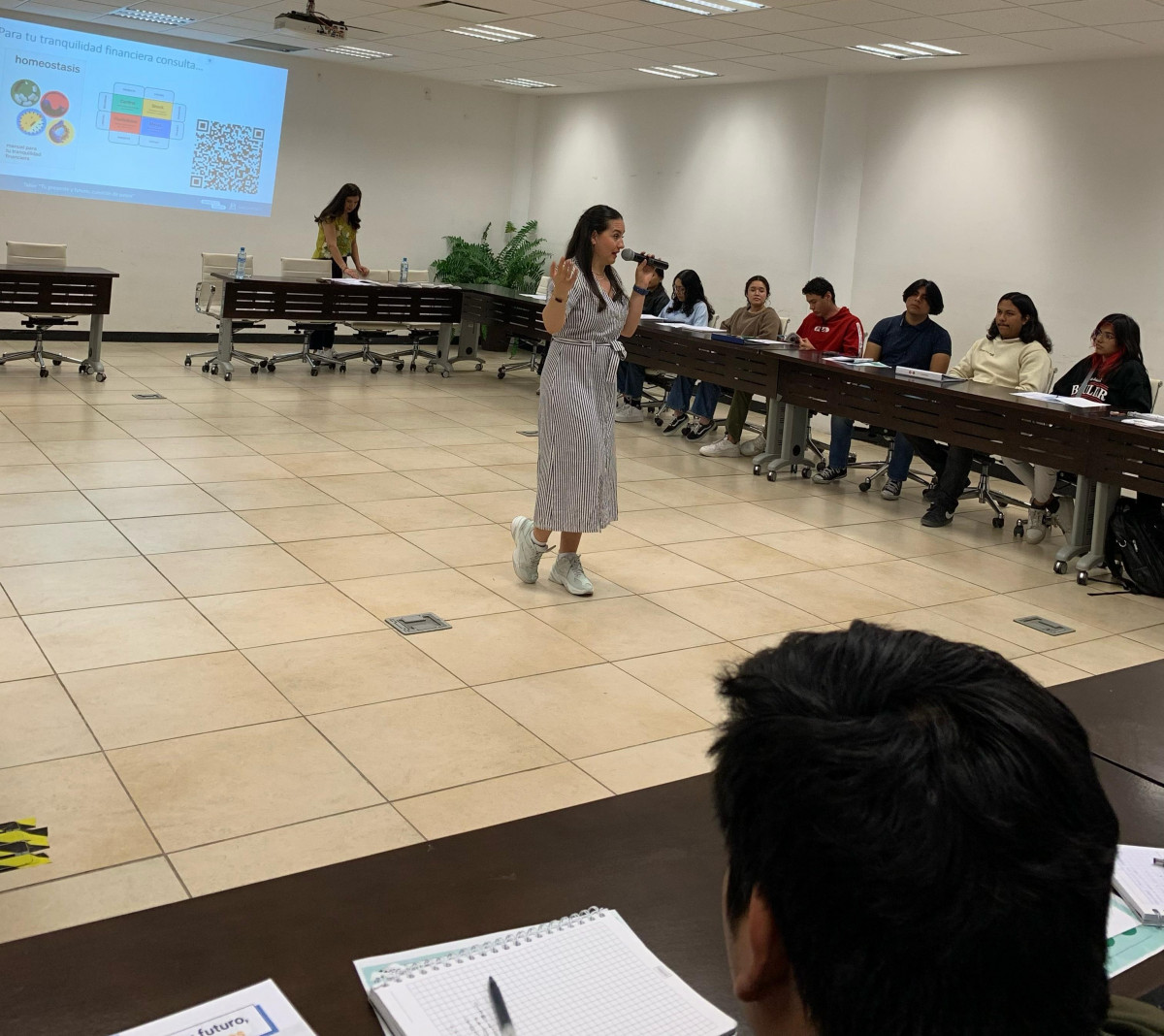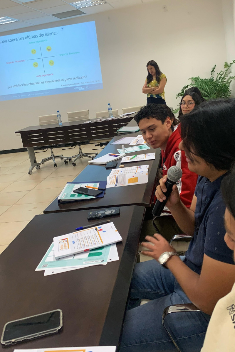 En la segunda actividad correspondió participar a las y los estudiantes de quinto cuatrimestre en el Taller: «Tu presente y futuro, cuestión de pesos«, donde se trataron temas de finanzas personales y la importancia de aprender sobre como emplear el dinero y las diversas formas de generar ingresos, tomar decisiones y aprovechar el ahorro personal, así como la obtención de créditos para lograr metas financieras.