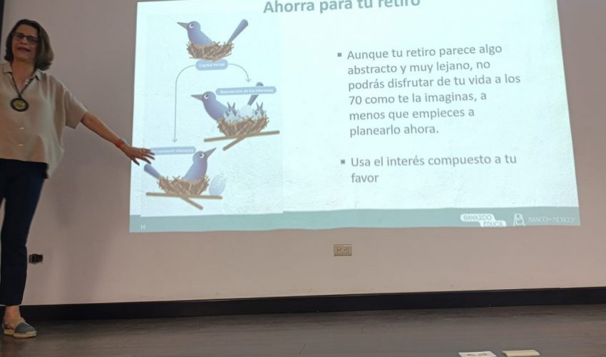 Dicha importante Conferencia Magistral la impartió María Teresa Borja Chico, mientras que el Taller lo realizaron la Mtra. Martha Eugenia Mancera Tovar, la Lic. Ana Laura Fernández Fabián y la Lic. Laura Vázquez Ramos, analistas de Educación Financiera del Banco de México.