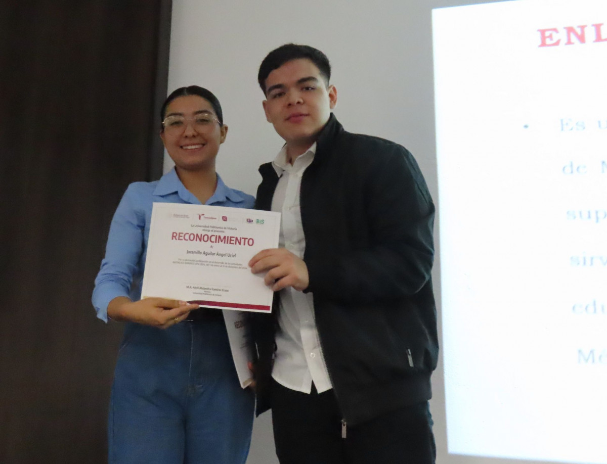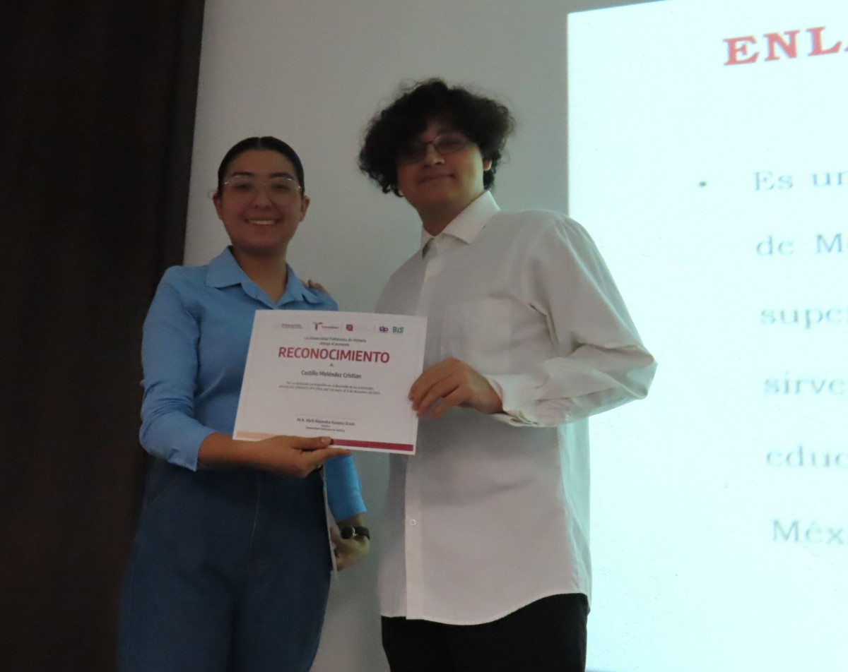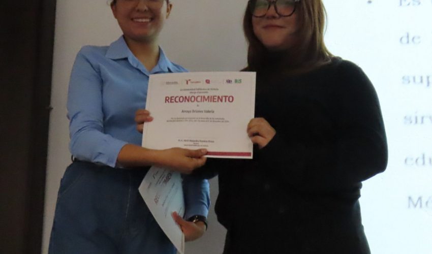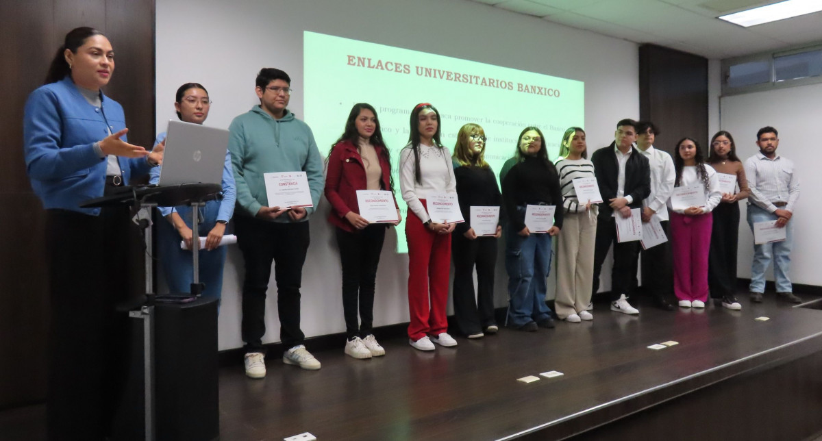 Con el fin de promover la cooperación de nuestra comunidad estudiantil en las actividades que tiene bajo su responsabilidad la Enlace BANXICO en la Universidad Politécnica de Victoria para el año actual, se llevó a cabo el «Evento de apertura de Enlace Banxico UPV 2025”, donde se reconoció el arduo trabajo del equipo de Enlace Banxico UPV 2024 liderado por la estudiante Brisa Celeste Morales Cruz, del octavo cuatrimestre de la Licenciatura en Administración, quien además repite en el cargo en el año 2025, gracias a su magnífico desempeño.