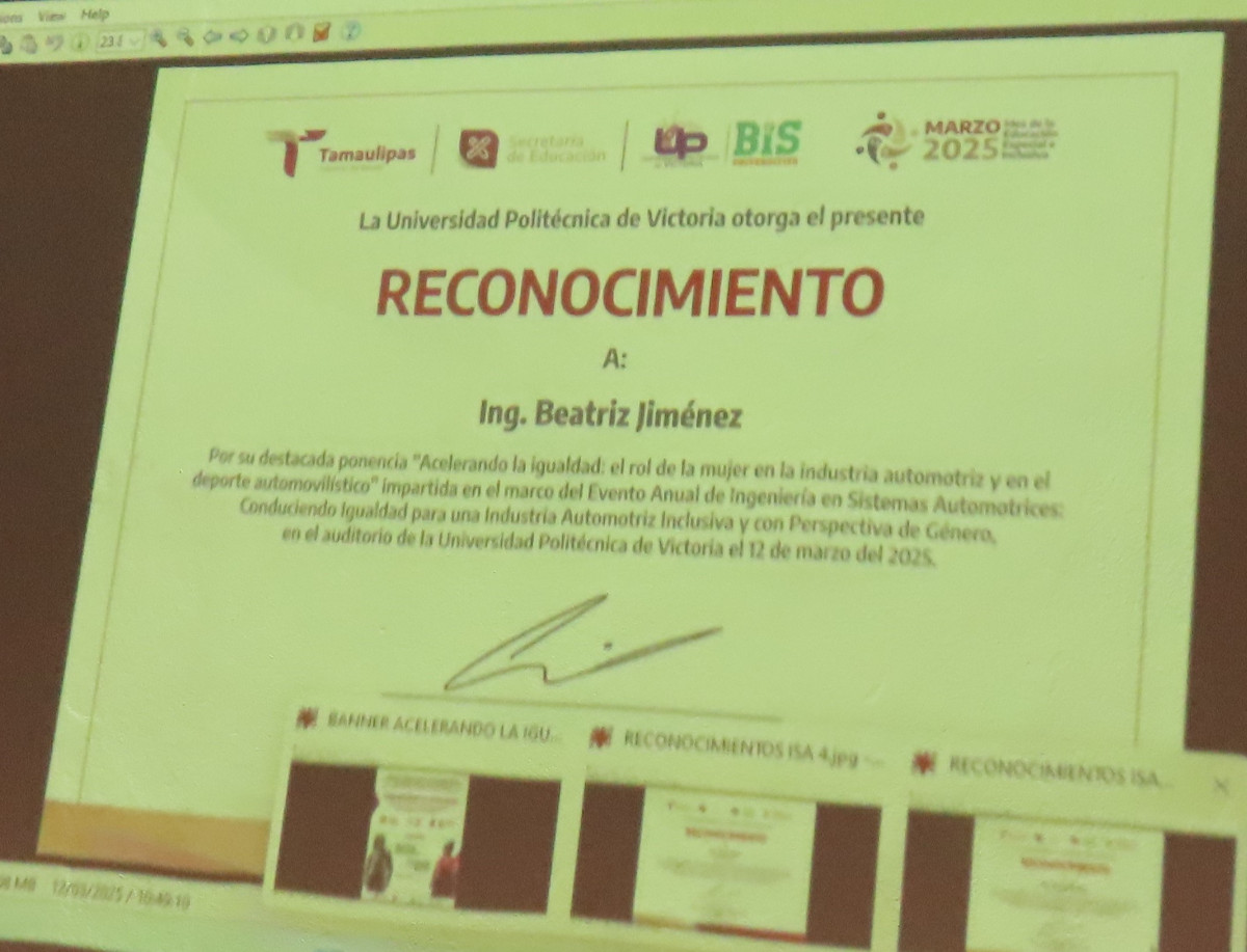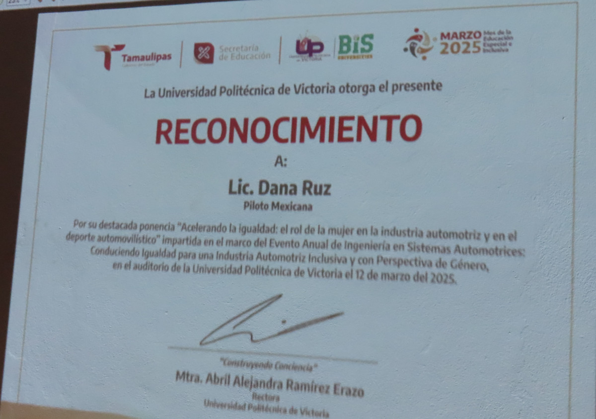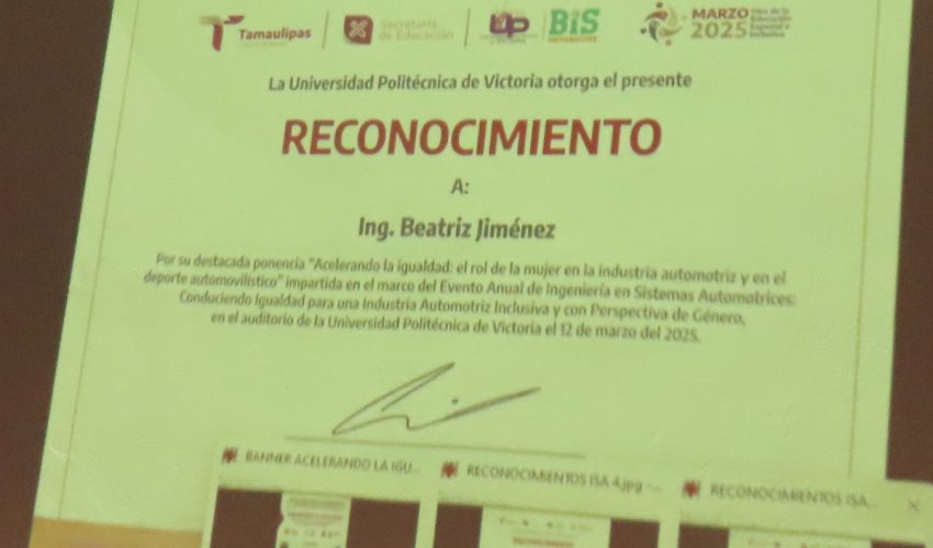 Importante conferencia enmarcada en el evento anual del programa académico de Ingeniería en Sistemas Automotrices (ISA) en la Universidad Politécnica de Victoria (UPV) fue sustentada por la Ingeniera Beatriz Jiménez y la Licenciada y PiIoto de autos de carrera, Dana Ruz, que titularon “Acelerando la Igualdad: el rol de la mujer en la industria automotriz y en el deporte automovilístico”.