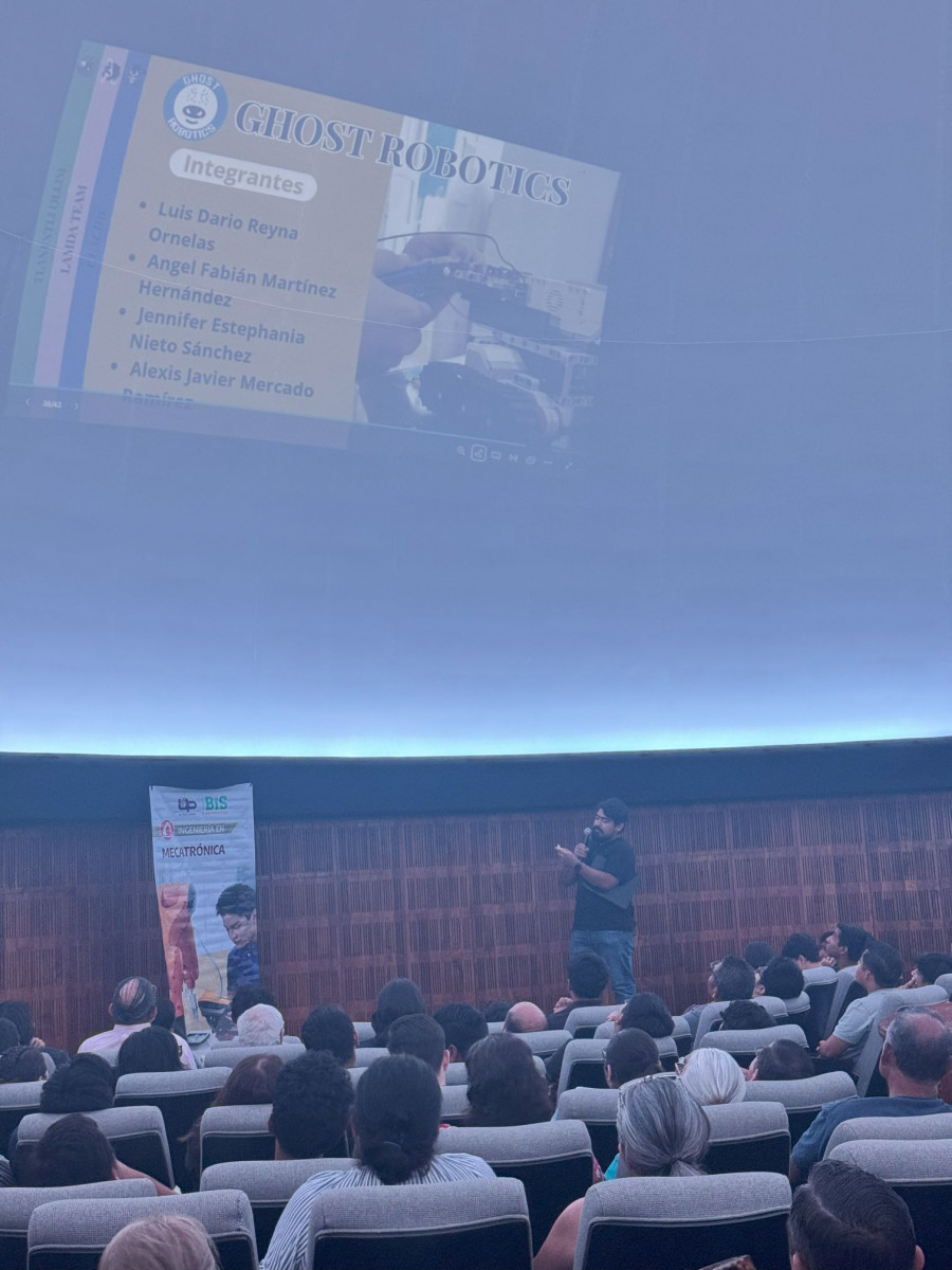 Al término de la exposición celebrada en el Planetario, se realizó una exhibición de las plataformas robóticas que presentará la Delegación UPV-NIX-LAB, en el TMR 2025, donde los padres de familia y público en general admiraron el funcionamiento de los robots y sus aplicaciones en términos reales, al presentarse una emergencia.