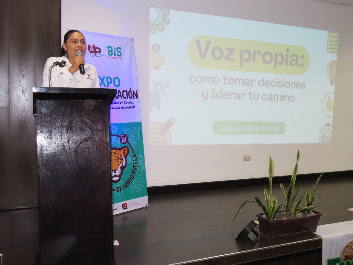Con todo éxito inició hoy 9 de julio la Novena Expo Administración UPV 2025, en el Auditorio de la Universidad Politécnica de Victoria, donde el Licenciado y periodista Daniel Alberto Espinosa Huerta sustentó la Conferencia Magistral “Voz propia: cómo tomar decisiones y liderar tu camino”, en una ceremonia presidida por la Maestra Estela Torres Ramírez, Secretaria Académica, quien llevó a cabo la declaratoria inaugural de este evento que abarca los días 9 y 10 de julio.
